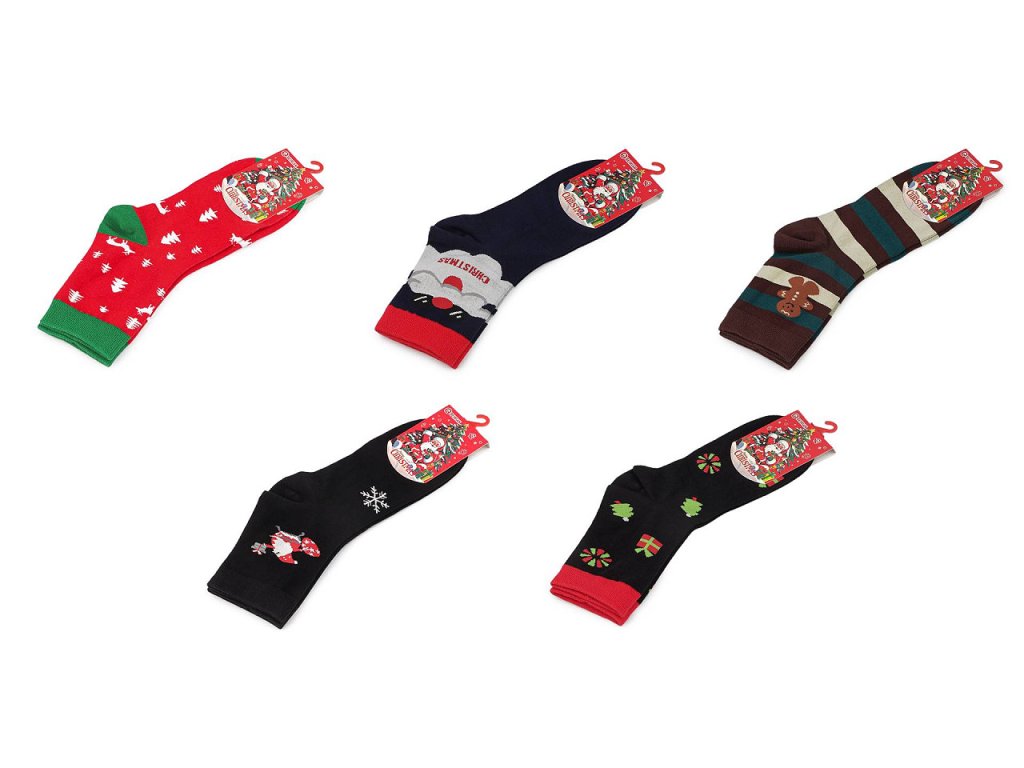 Bavlněné ponožky s vánočními obrázky dokáží pobavit už na první pohled. Příjemně se nosí, jsou pružné a prodyšné. Ve špičce mají pohodlný plochý šev, netlačí. Budou stylovým dárkem na Vánoce, pobaví na rodinných oslavách, firemních večírcích, vánočních párty i na Silvestra. Jsou vhodné pro dámy i pány.