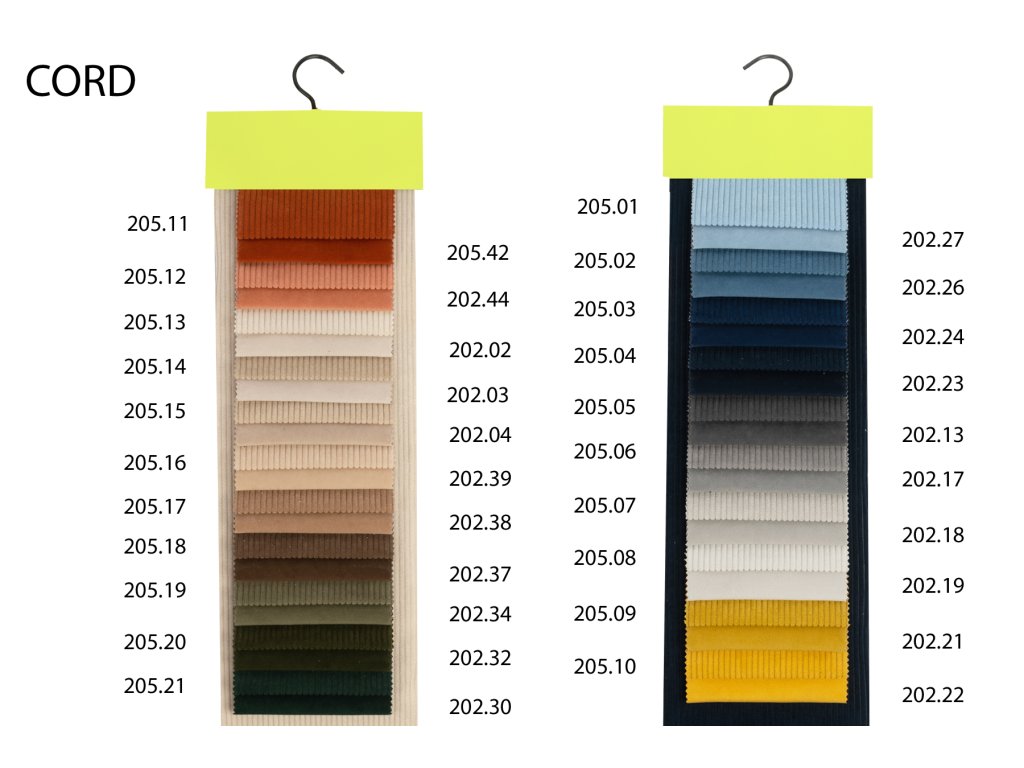 Potahová látka CORD typu manchester má vodoodpudivou úpravu, cigaretový test EN 1021-1 a je vhodná pro domácí mazlíčky. Šířka proužku je 0,5 cm.