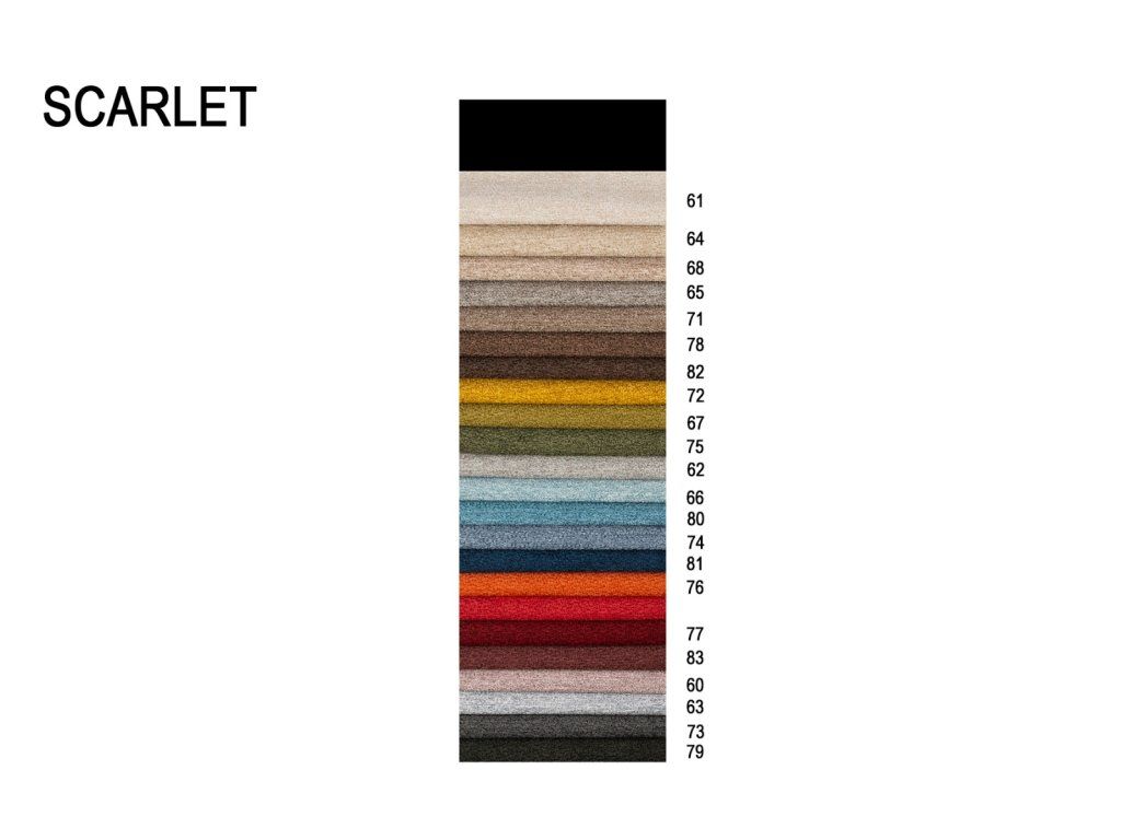 Moderní potahová látka typu žinylka SCARLET nabízí elegantní a uhlazený vzhled. Povrch s krátkými vlákny nevytváří melírovaný vzhled. Je vhodná do bytových prostor a disponuje teflonovou úpravou pro snadné čištění a je nehořlavá dle testu EN 1021-1.