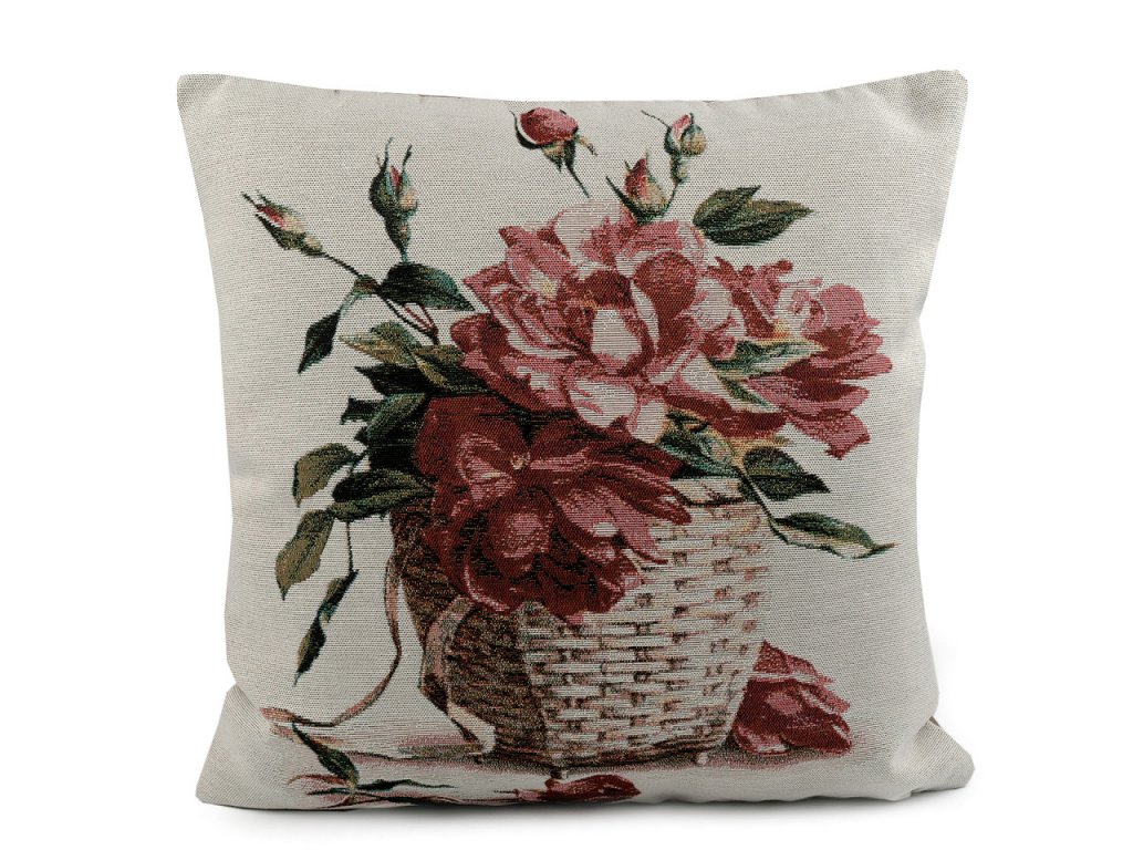 Povlaky na polštář zdobí romantické obrázky květů oživí a zútulní váš interiér. Zpracováním napodobují gobelín. Povlaky jsou jednostranné, zadní strana je jednobarevná, z jemného plyše. Mají pohodlné zapínání na zip.