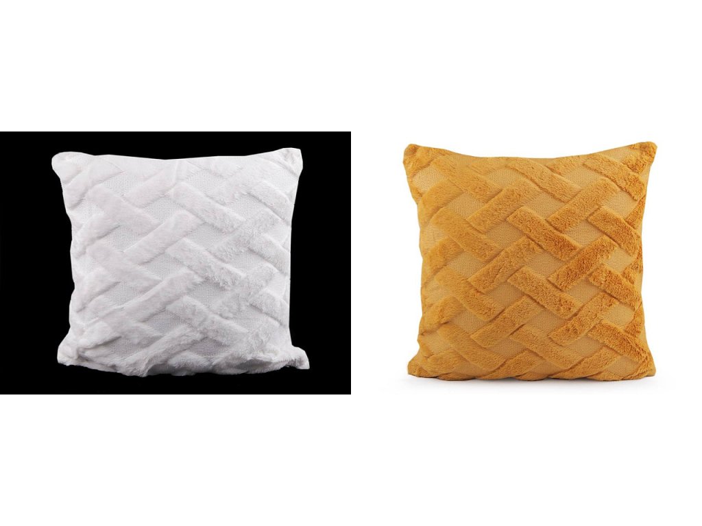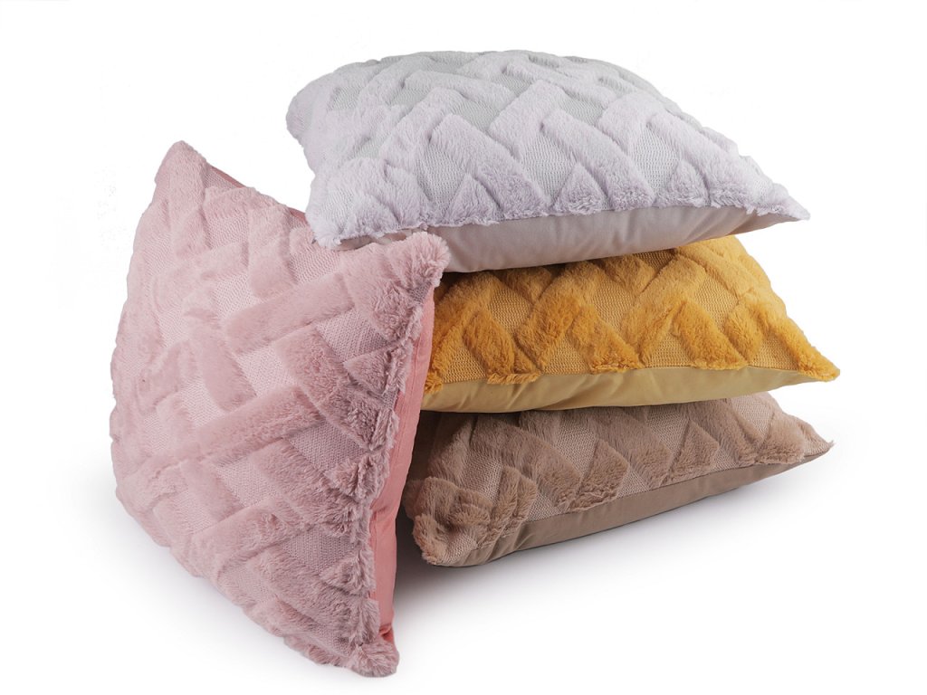 Hebké a měkké povlaky na polštáře zdobí výrazný plyšový vzor. Zapínají se pohodlně na zip. Jsou jednostranné, zadní strana je jednobarevná, z příjemného materiálu s jemným nízkým vlasem, který připomíná samet.