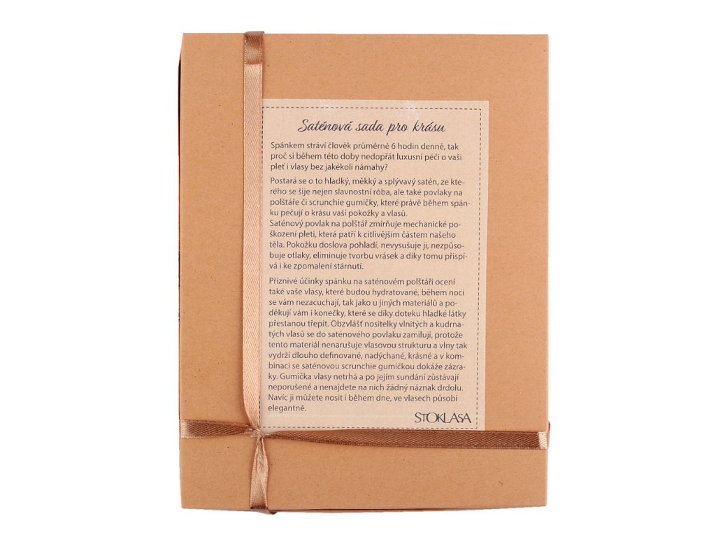 Saténový povlak na polštář a saténová scrunchie gumička se luxusně postarají o vaši pleť a vlasy během spánku. Saténový povlak zmírňuje mechanické poškození pleti. Pokožku pohladí, nevysušuje ji, nezpůsobuje otlaky, eliminuje tvorbu vrásek a díky tomu přispívá i ke zpomalení stárnutí. Gumičku ocení také vlasy, které budou hydratované, nezacuchají se tak jako u jiných materiálů a poděkuji vám i konečky vlasů, které se díky doteku hladké látky přestanou třepit. Obzvláště majitelky kudrnatých vlasů se zaradují, protože jejich vlny zůstanou nadýchané. Gumička vlasy netrhá, můžete ji nosit i během dne, ve vlasech vypadá elegantně.