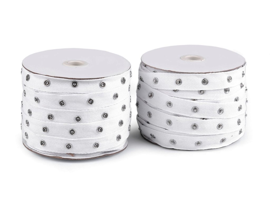Bavlněné zapínání s kovovými druky využijete převážně na šití body, ale i jako skryté zapínání na oděvy. Stuha je díky bavlně měkká a příjemná na dotek.