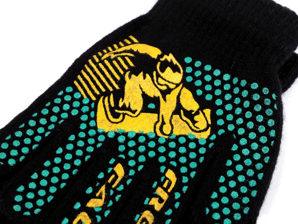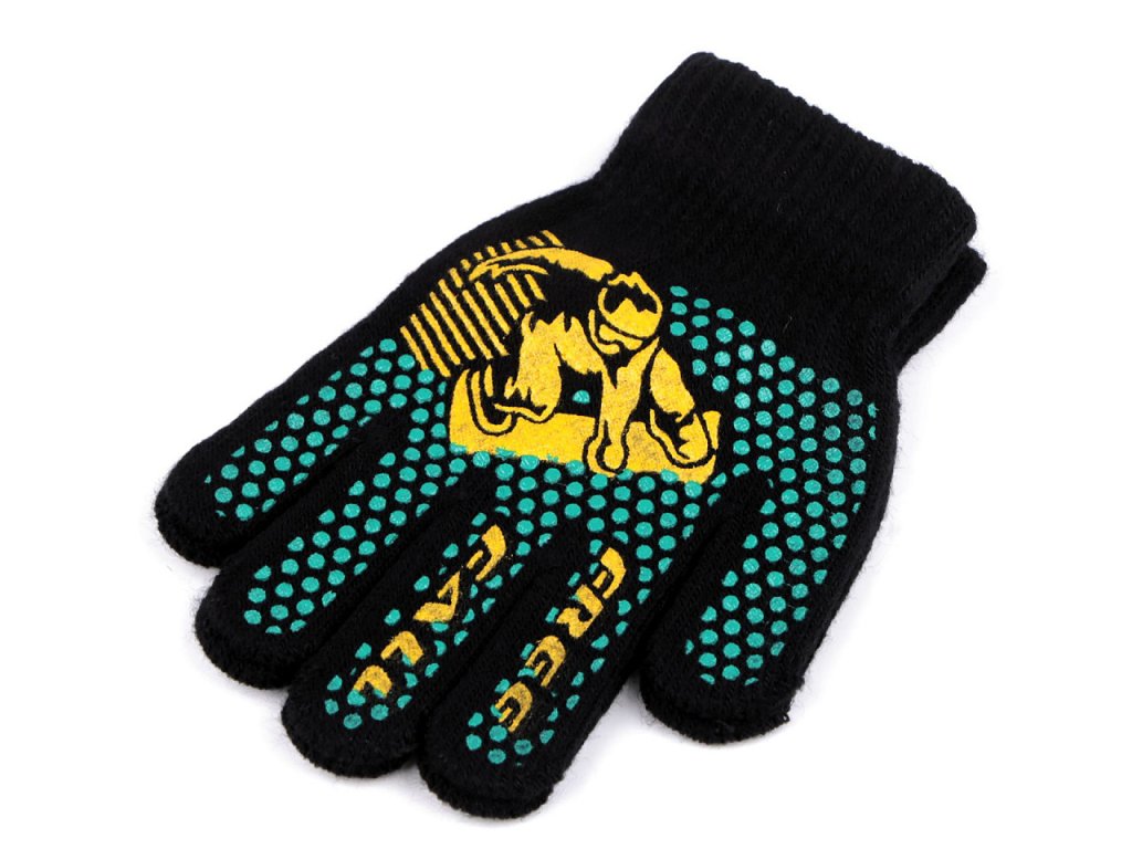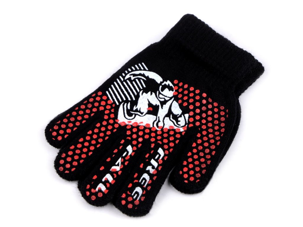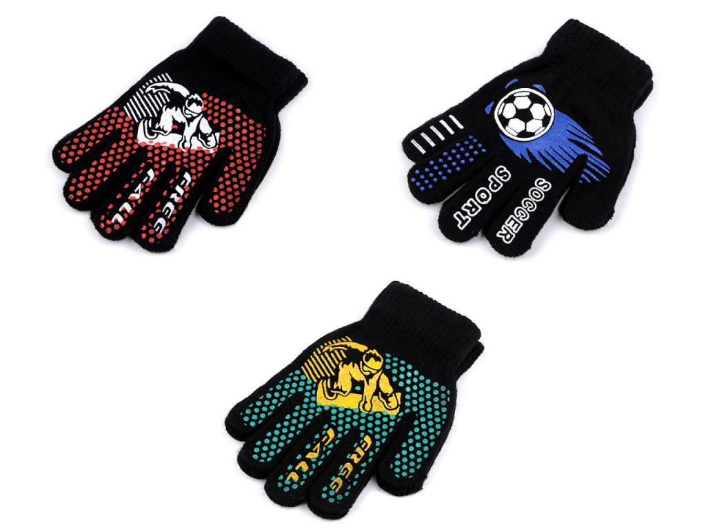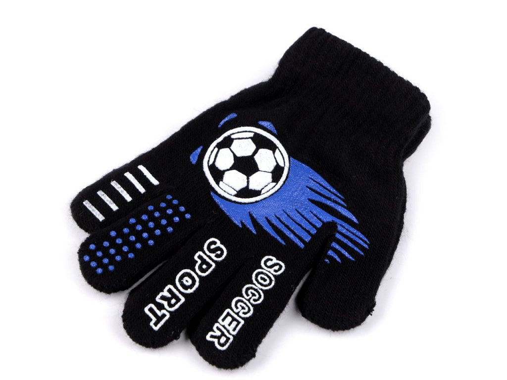 Pletené prstové rukavice si chlapci zamilují kvůli gumovému sportovnímu potisku. Jsou ideální do sychravého podzimního a zimního počasí. Jemná pružná pletenina se ruce skvěle přizpůsobí, výborně se natahují. Díky pružnému lemu kolem zápěstí pevně drží - nesklouzávají.