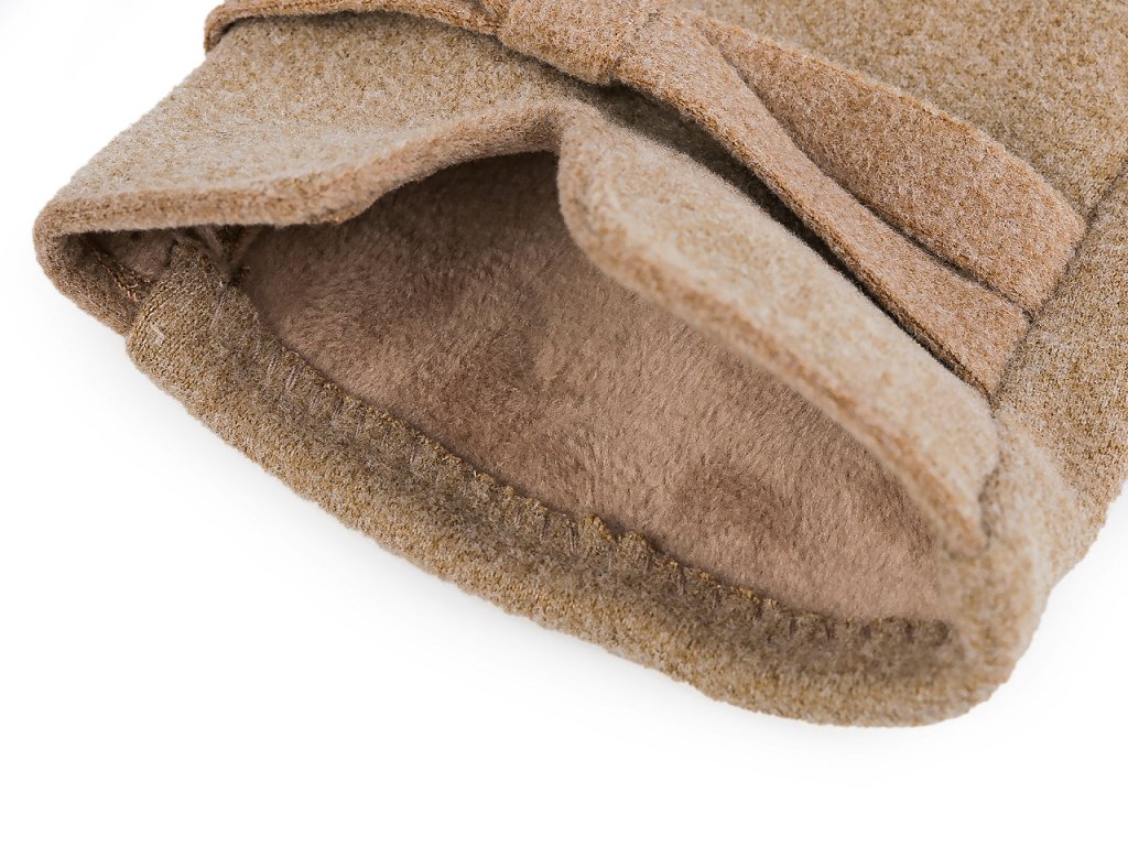 Dámské rukavice s ozdobnou manžetou jsou velice elegantní. Teplý pružný úplet se ruce skvěle přizpůsobí. Uvnitř je jemný plyš, jenž je velice příjemný na dotek. Tento módní doplněk se hodí do zimy nebo do chladnějšího podzimního počasí.