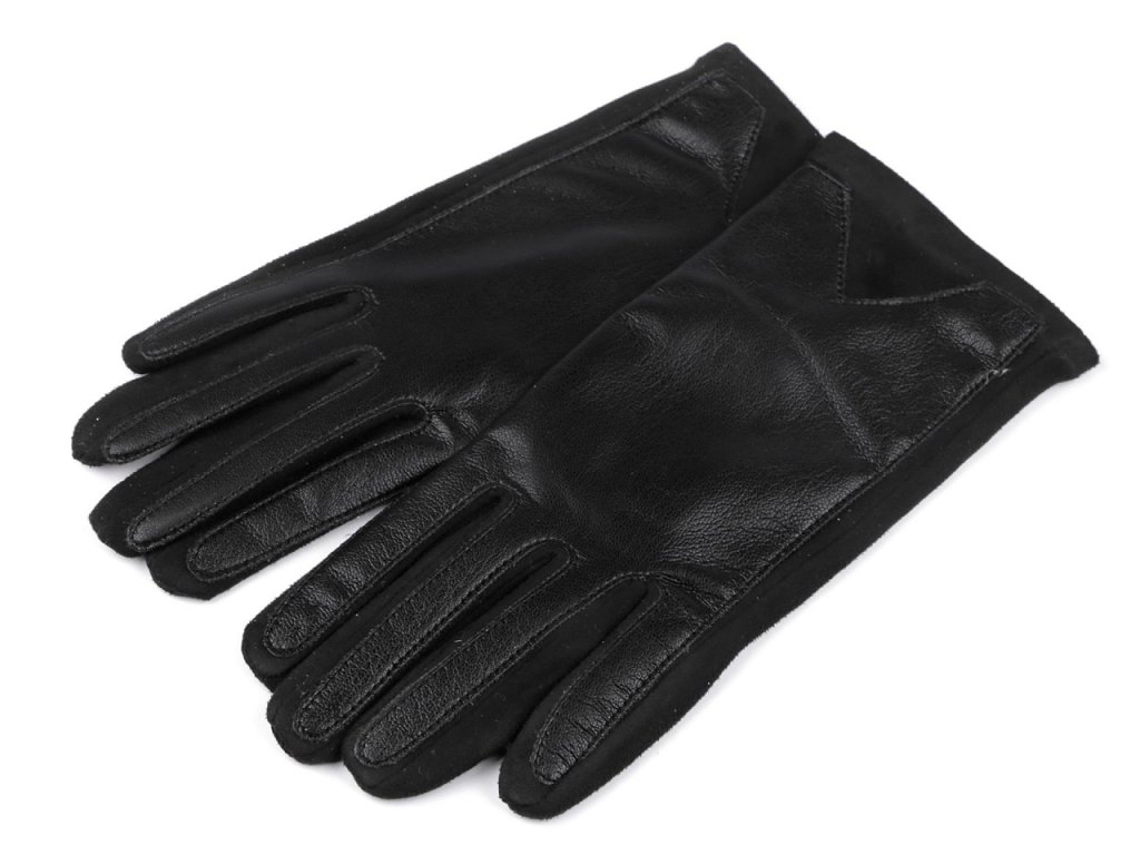 Elegantní dámské rukavice jsou na horní straně ozdobené lesklou eko kůží. Rukavice jsou jemně pružné. Dolní strana rukavic připomíná broušenou kůži. Uvnitř mají jemný plyš, jenž je velice příjemný na dotek. Hodí se do mírné zimy nebo do chladnějšího podzimního počasí.
