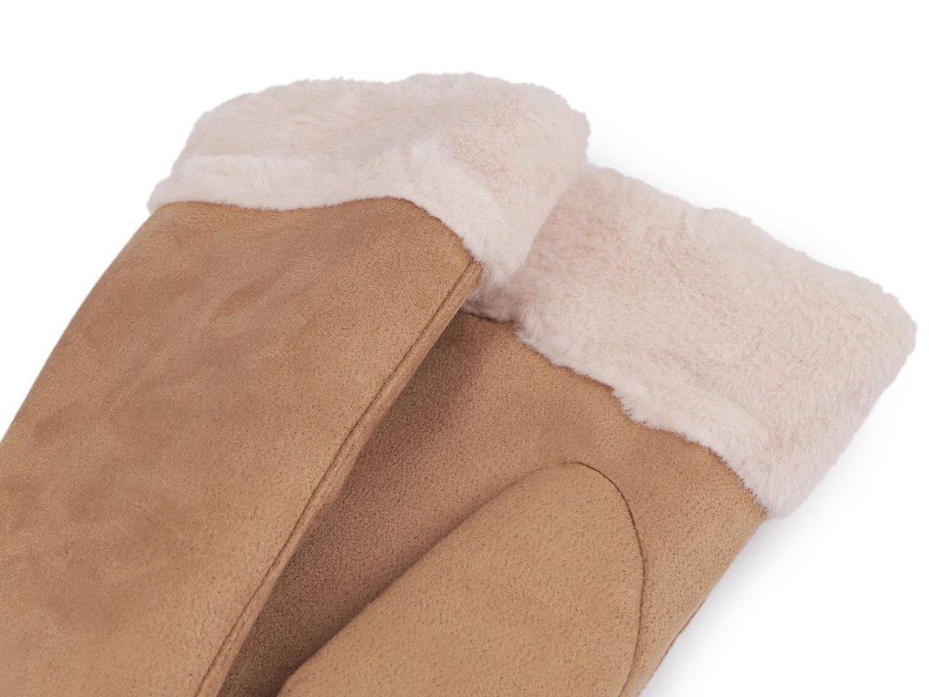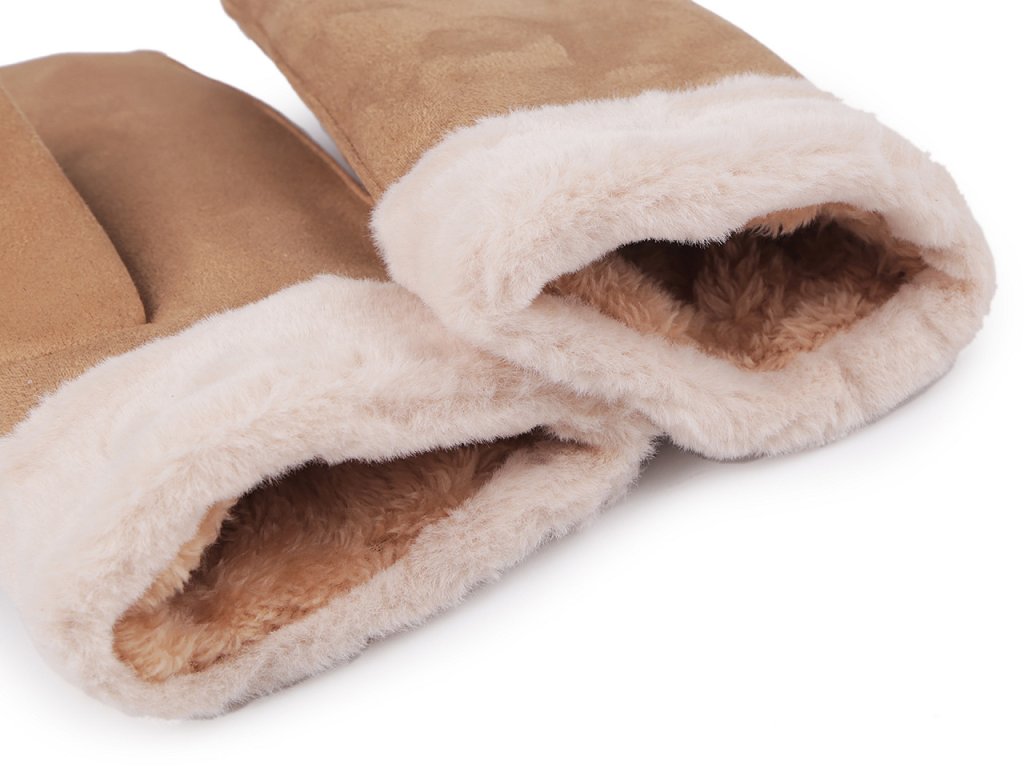 Dámské rukavice palčáky jsou nestárnoucí klasikou, která stylově doplní váš outfit ve městě i na horách. Jsou ozdobené lemem z umělé kožešiny, jejich povrch připomíná broušenou kůži. Uvnitř mají příjemný plyšový kožíšek. Hodí se do zimy, vaše ruce perfektně zahřejí.
