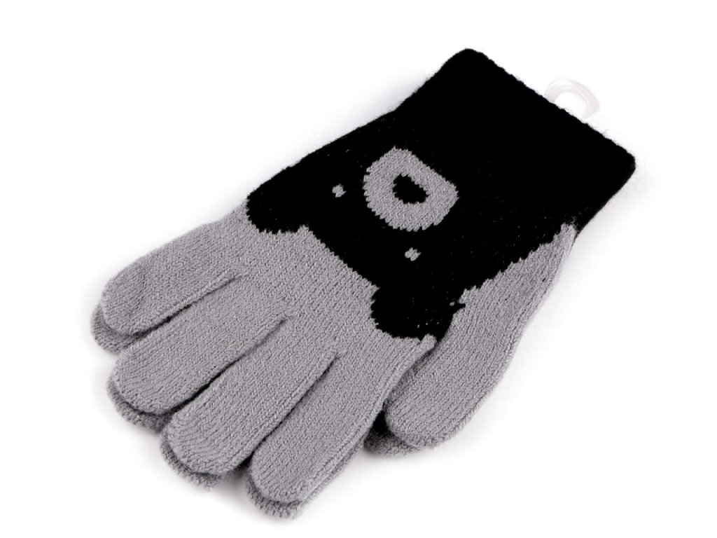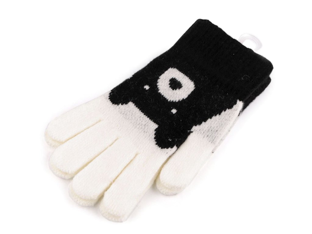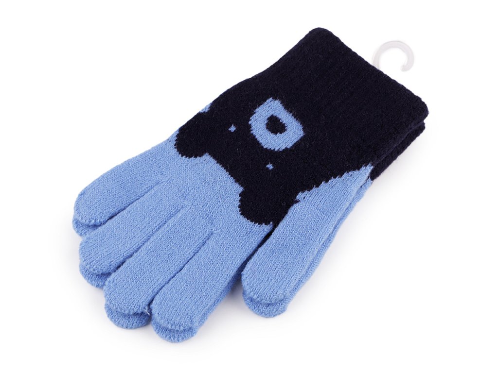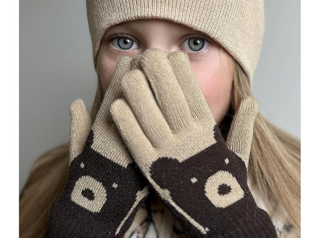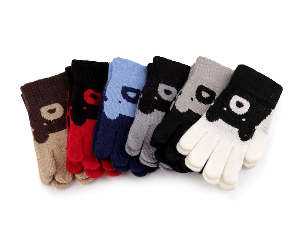 Dětské pletené rukavice jsou z obou stran ozdobené motivem medvídka. Jsou vyrobené z pružné, hřejivé pleteniny, která se ruce skvěle přizpůsobí. Díky pružnému lemu kolem zápěstí pevně drží - nesklouzávají. Jsou ideálním doplňkem do sychravého podzimního a zimního počasí.