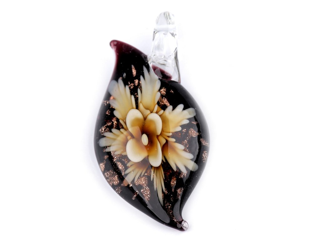 Přívěsky jsou vyrobené ze skla, uvnitř mají nádherně probarvený květ. Okolo je květ jemně dozdobený glitry. Zadní strana přívěsku je plochá. Na krk si můžete přívěsek pověsit na řetízek nebo kůži díky velkému praktickému oušku.
