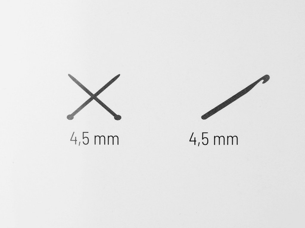 Vzorek na fotografii (43 x 38 cm) byl upleten z 1 klubíčka, jehlicemi č. 4,5.