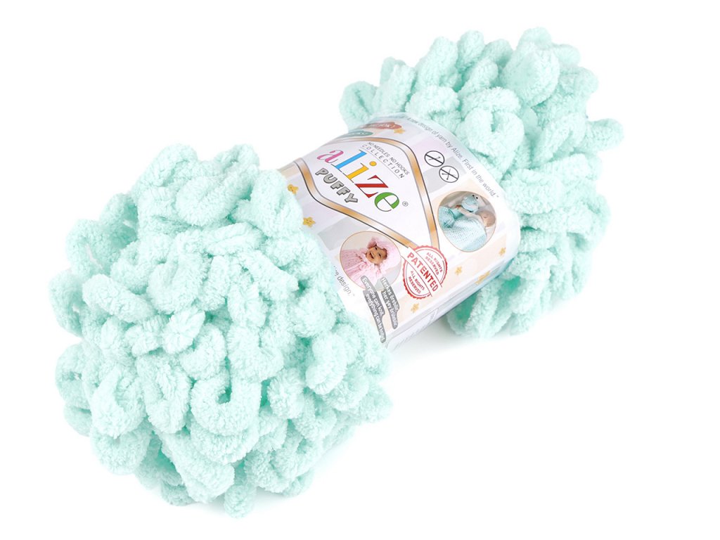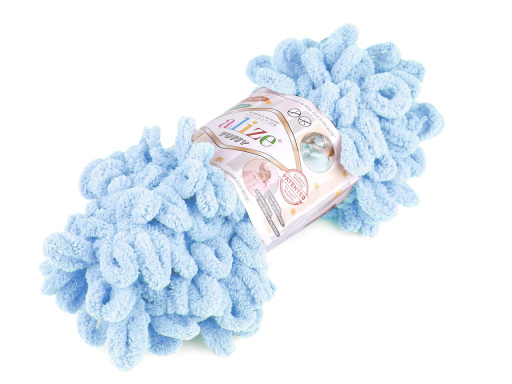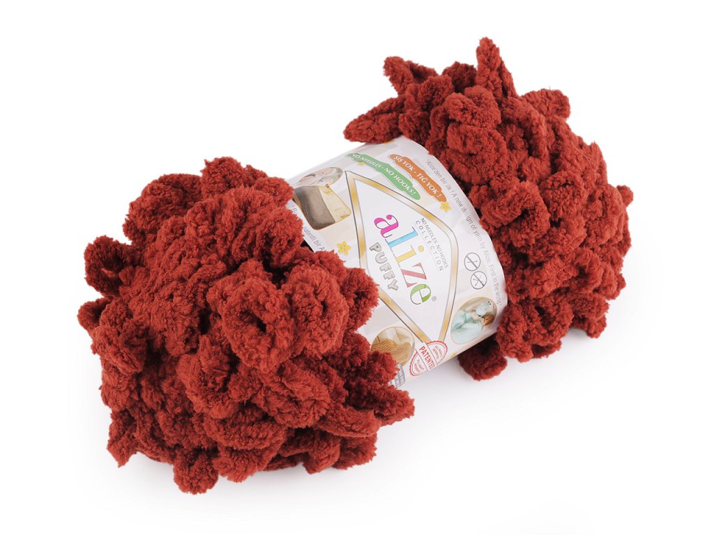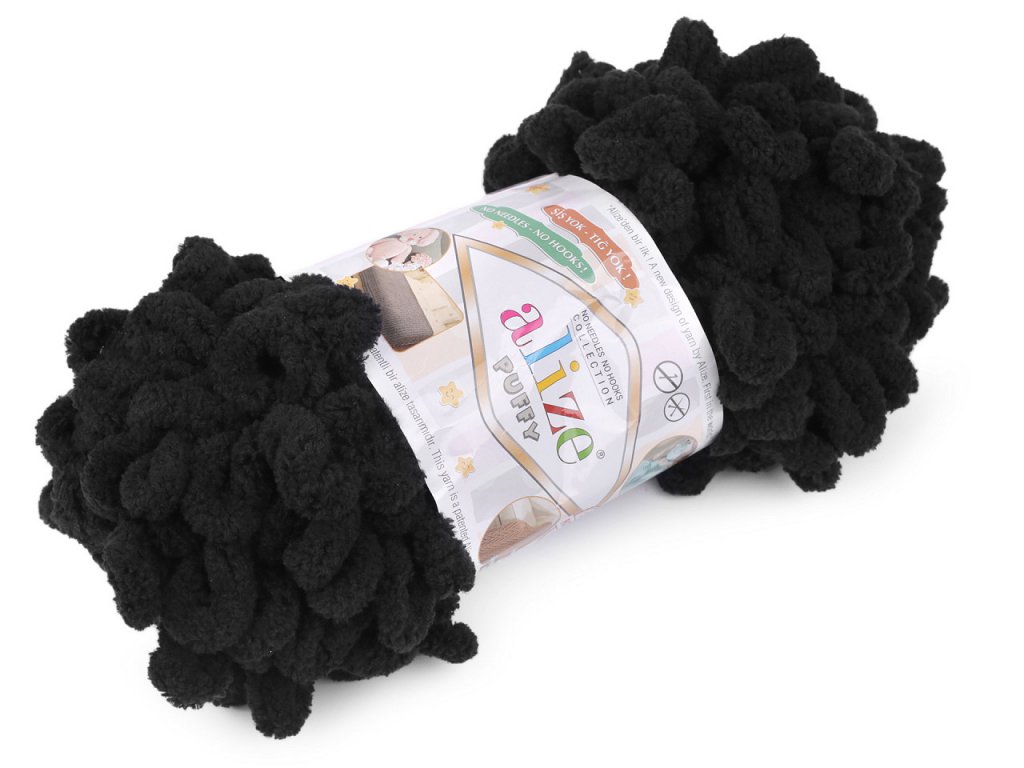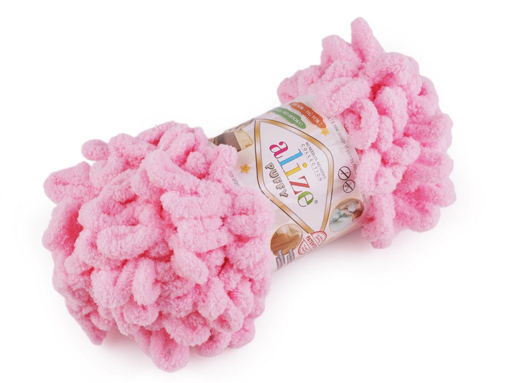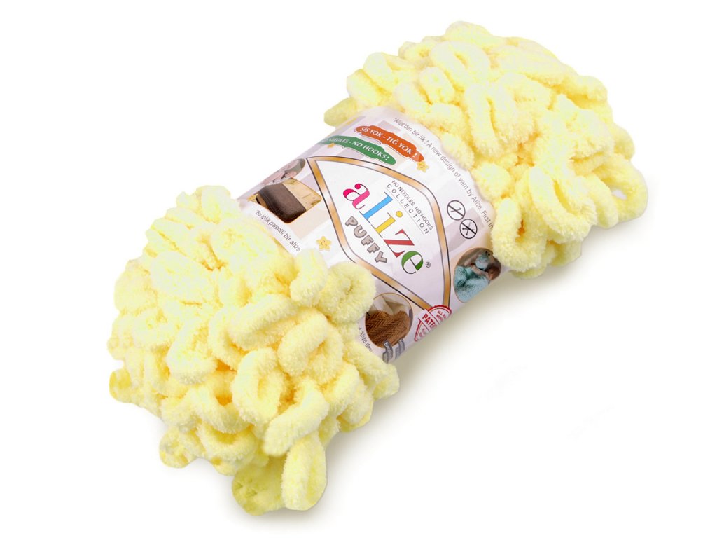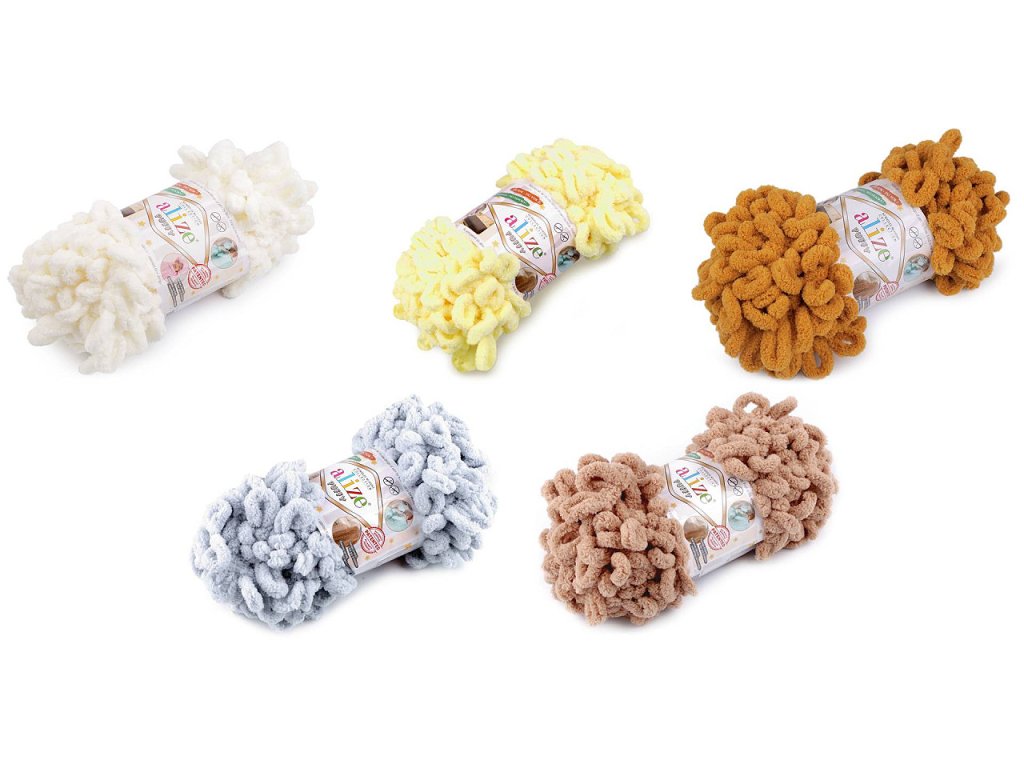 Příze Alize Puffy je měkká, chlupatá žinylková příze s velkými očky. Na pletení nepotřebujete jehlice ani háček - proplétají se jednotlivá očka. Je vhodná na pletení dek, šálů apod.