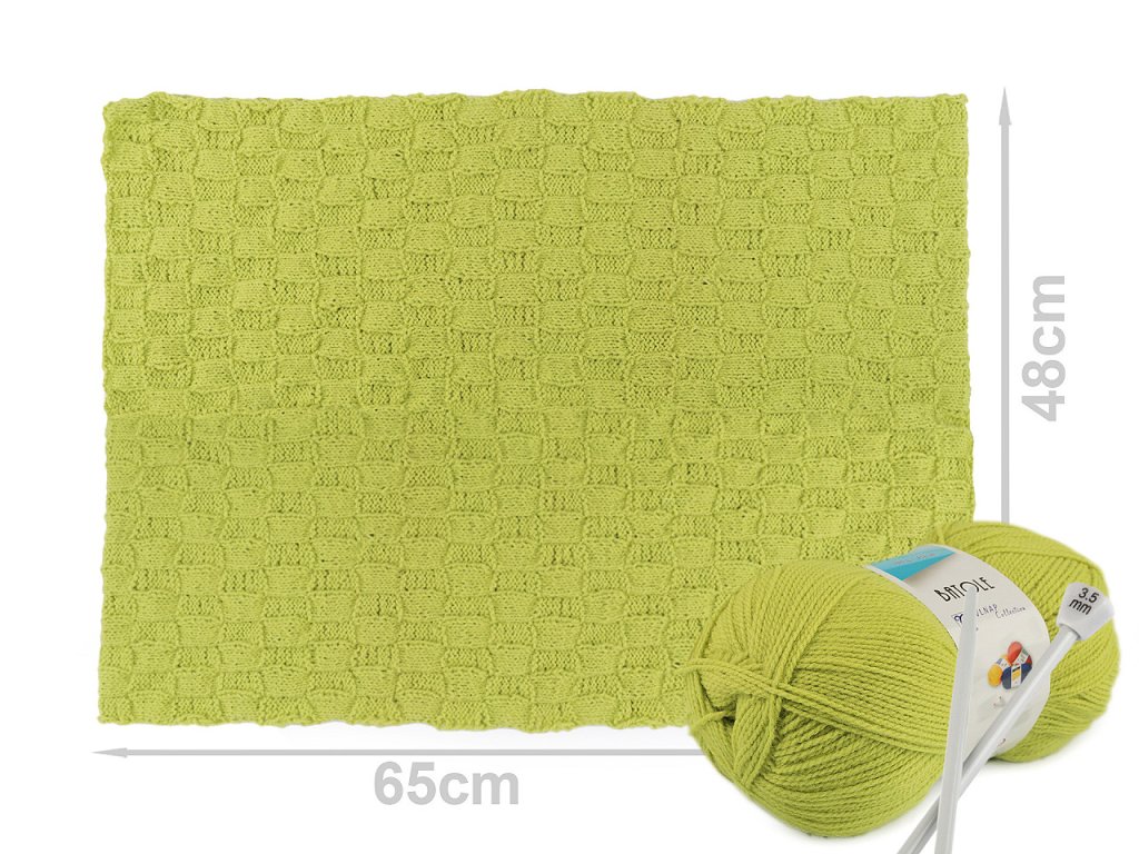 Vzorek na fotografii (65 x 48 cm) byl upleten z 1 klubíčka, jehlicemi č. 3,5.
