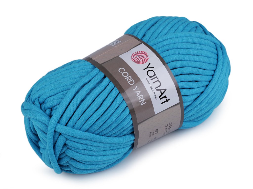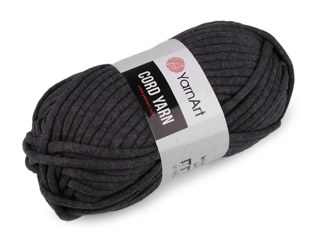 Přízi Cord Yarn tvoří tunýlek pletený z jemné a pevné bavlny, který je vyplněný polyamidovým vláknem. S přízí se výborně pracuje, je hladká a nezatrhává se.