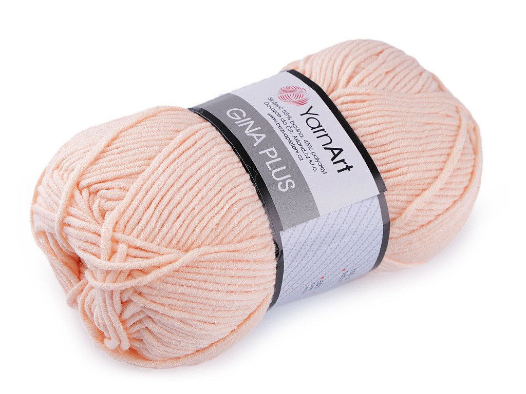Pletací příze Gina Plus je díky vysokému podílu bavlny velmi příjemná na dotek.