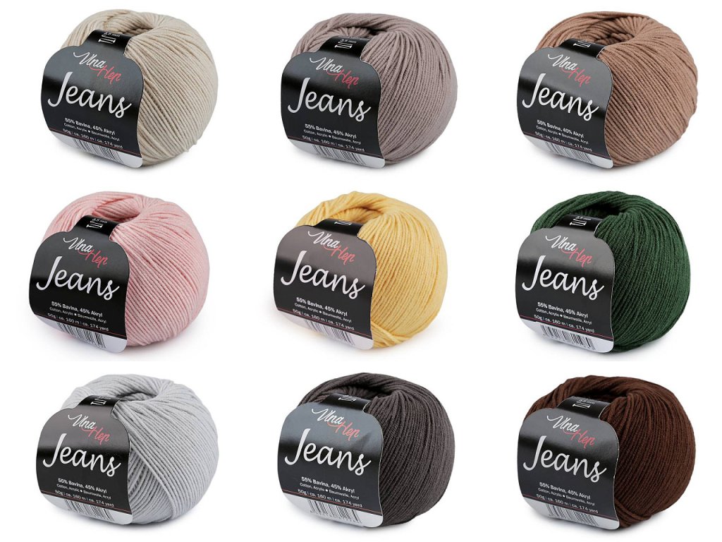 Pletací příze Jeans je příjemná na dotek. Její jemná textura je ideální pro vytváření pohodlných a prodyšných oděvů či doplňků. Využijete ji na pletení či háčkování hraček, lehkých svetrů, čepic nebo ponožek.