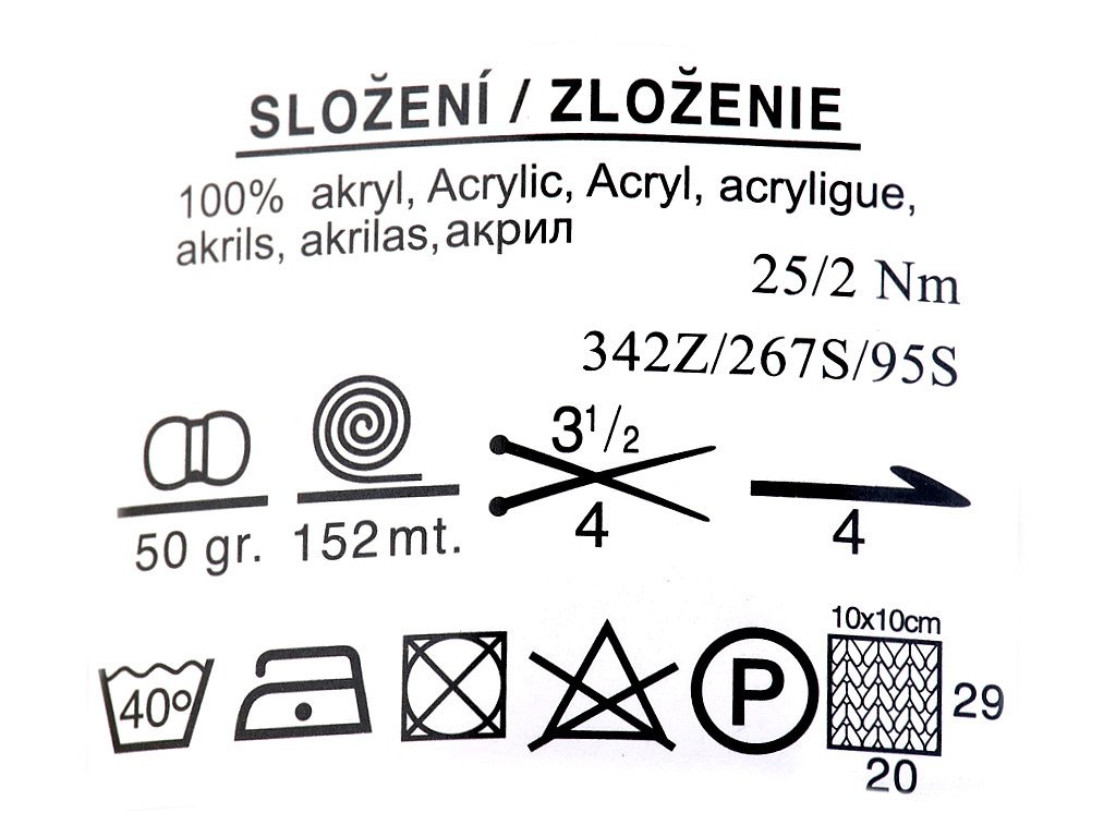 Jedna z nejoblíbenějších pletacích přízí je vyrobena ze 100% akrylu. Každá pletařka jistě ocení materiál příjemný na dotek. Přízi můžete využít nejen na pletení zimních i letních svetrů, svetříků a halenek, ale i na háčkování.Jedná se o kvalitní český výrobek.