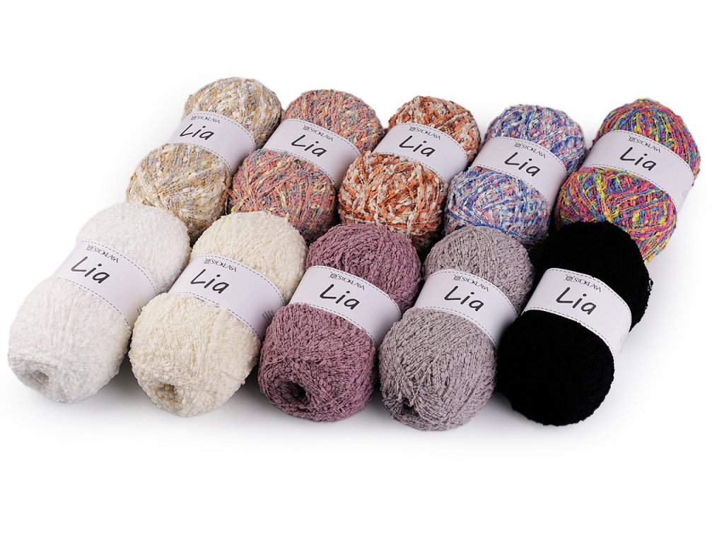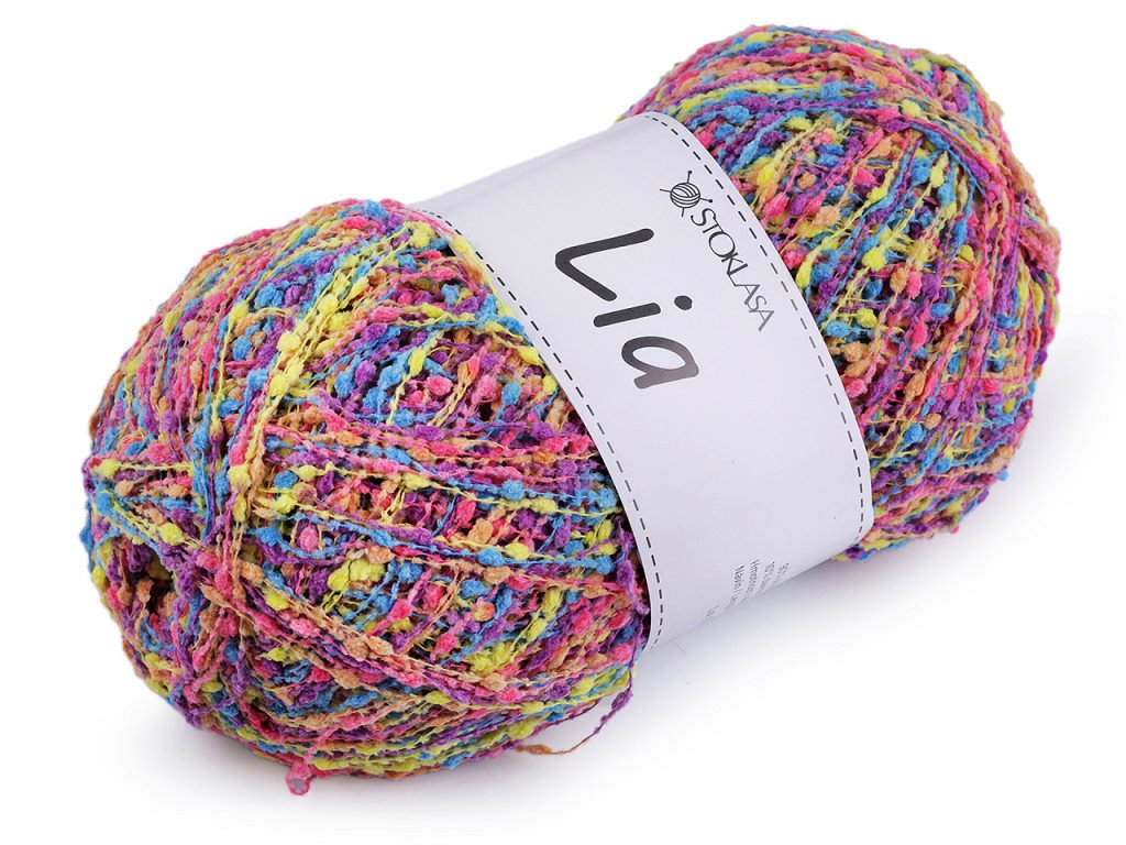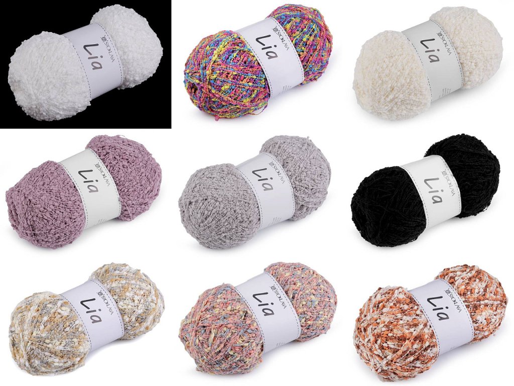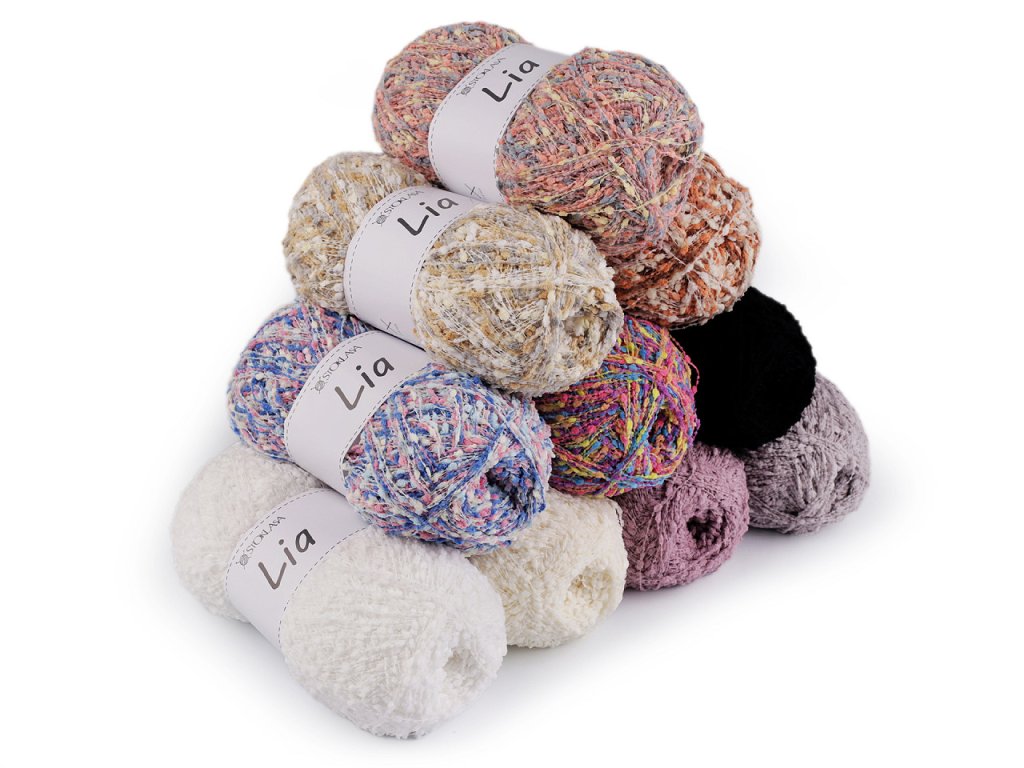 Příze Lia zaujme pozornost drobnými nopky, které dodají hotovému výrobku originalitu. Můžete z ní uplést šály, svetříky, vesty apod.