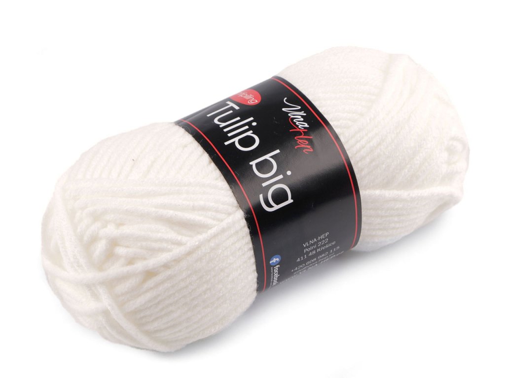 Silná příze Tulip big je vhodná na pletení zimních čepic, šálů, rukavic, svetrů, vest apod. Je velmi příjemná na dotek. Má antipillingovou úpravu, která zabraňuje žmolkování.