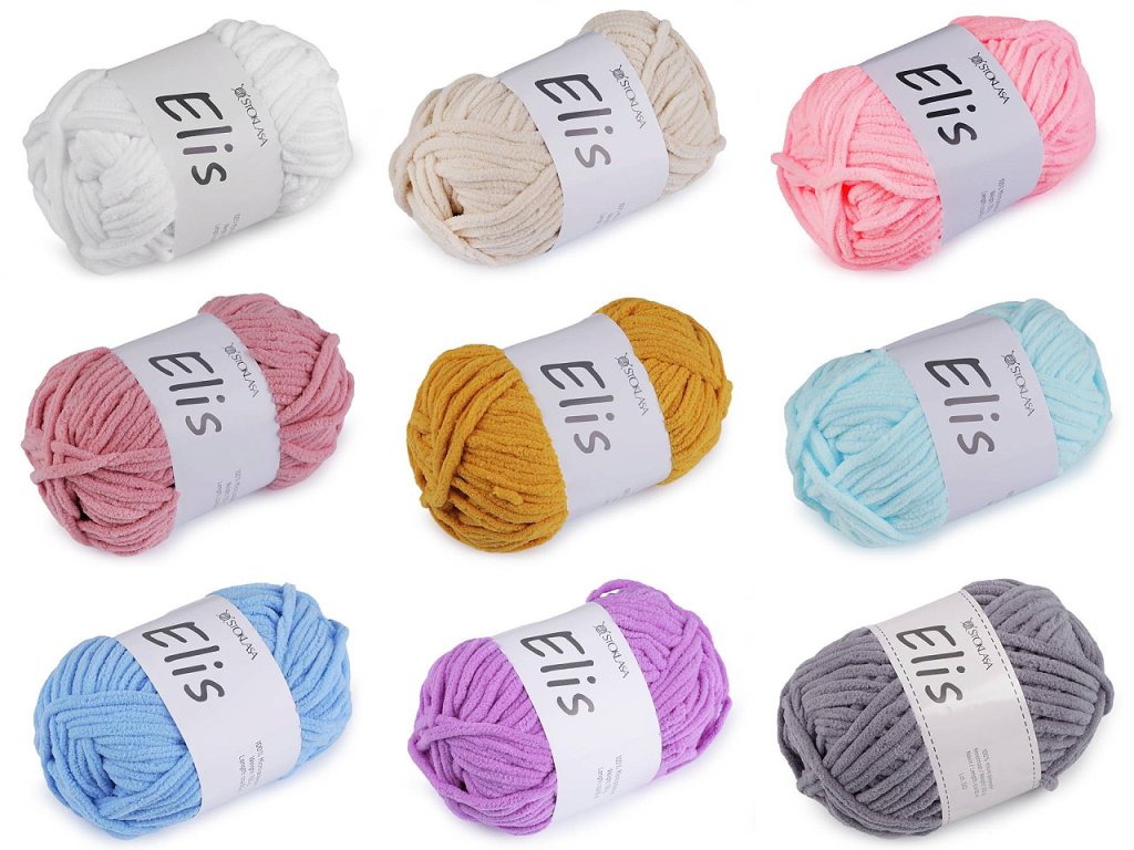 Žinylková příze Elis je měkká, hebká a velmi příjemná na dotek. Hodí se na pletení svetrů, šálů, čepic, ponožek apod.