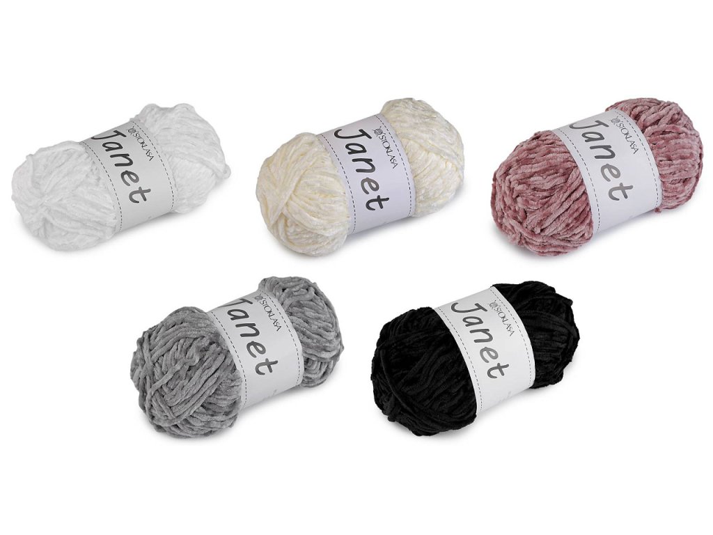 Žinylková příze Janet je jemná a velmi příjemná na dotek. Využijete ji na pletení měkkých svetrů, šálů, čepic, vest apod.