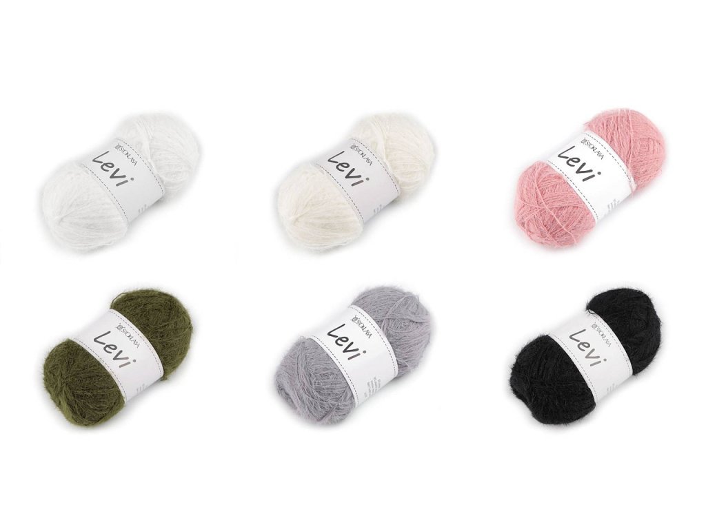 Tenká příze Levi je příjemná na dotek a zdobí ji jemný chloupek. Využijete ji pro připlétání do čepic, rukavic, svetrů, šálů, apod., ale i k háčkování malých postaviček, zvířátek a jiných dekorací.