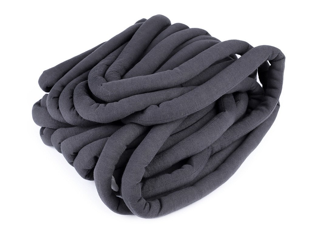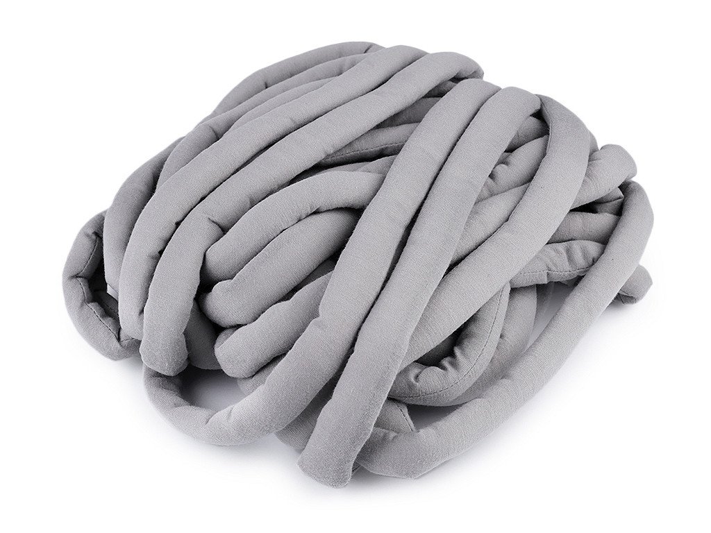 Příze Marshmallow je objemná, ale lehká. Tvoří ji tunýlek pletený z jemné hladké bavlny vyplněný vláknem. Dobře se vám s ní bude pracovat velkými jehlicemi nebo rukama.