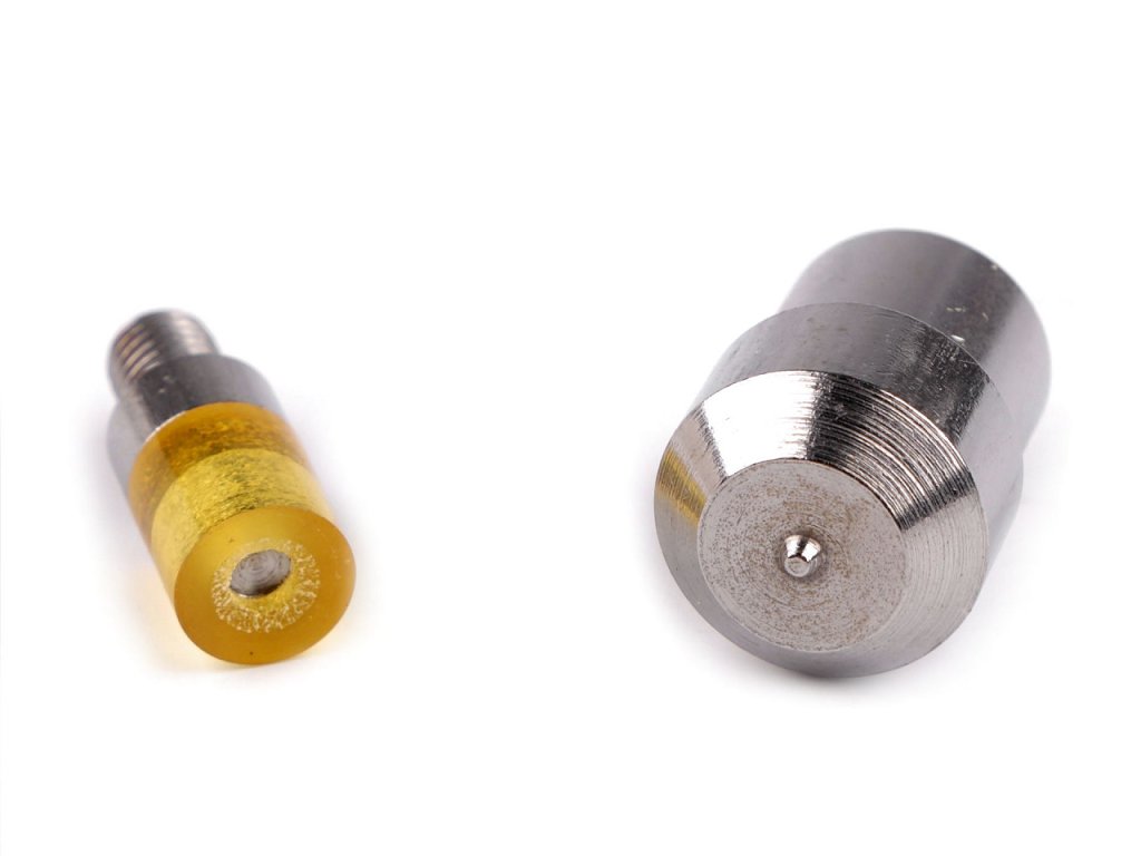 Piston má dvě části. Větší část pistonu, do které se vkládá nýt, umístíme v dolní části lisu. Druhou část zašroubujeme do lisu a vložíme vhodný komponent k nýtování.