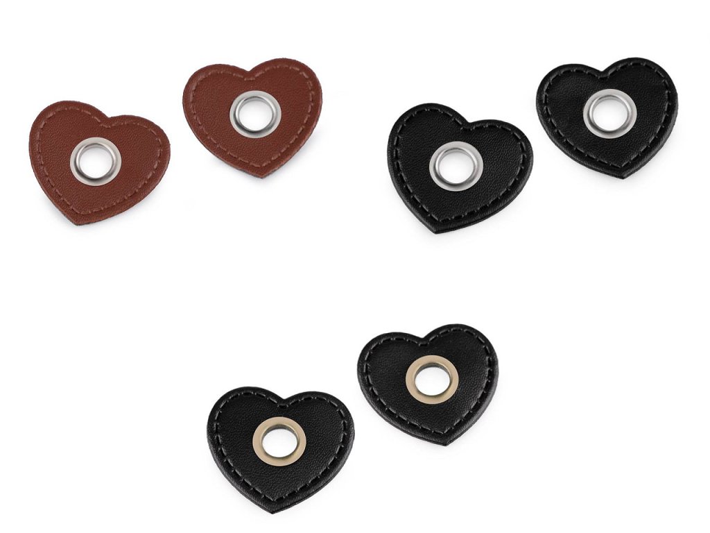 Priechodka s koženkovým srdcom na našitie, prievlak 8 mm