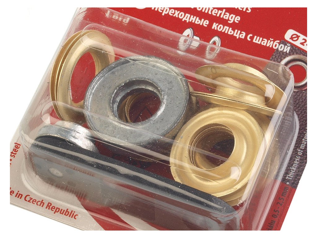Plachtové kroužky se používají jako průchodky pro šňůry, nebo jako výztuž větracích otvorů. V blistru je 10 párů plachtových kroužků. Jsou vyrobené z kovu a hrozí jím rezivění.