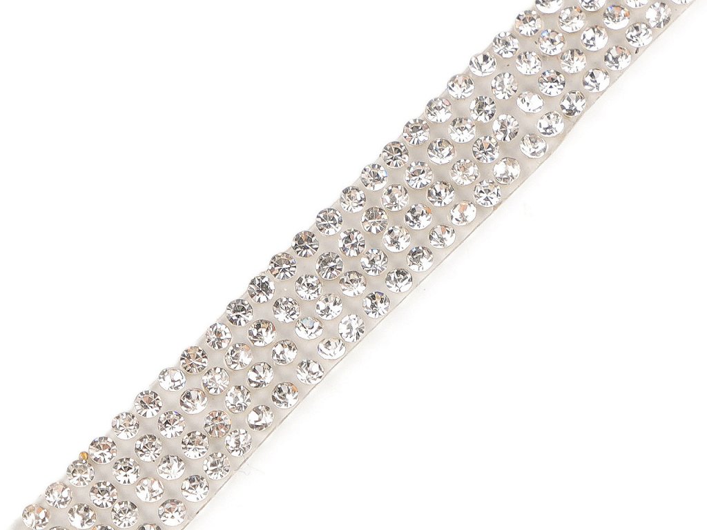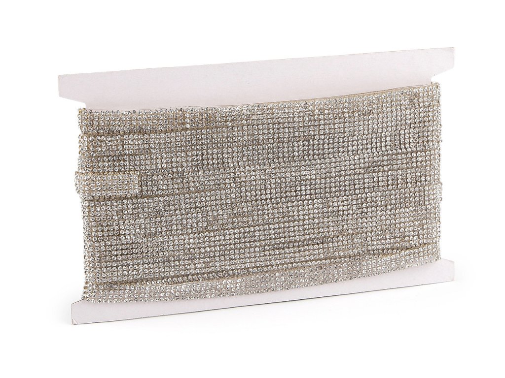 Nažehlovací borta s broušenými kamínky ušetří práci se zdobením oděvů. Jejím základem je lepící vrstva, která po nažehlení na oděv pevně drží. Bortu si můžete nastříhat dle potřeby.