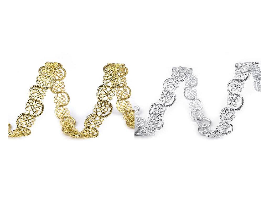 Propletený leonský prýmek působí díky třpytivému lurexu velmi slavnostně. Je pevný.