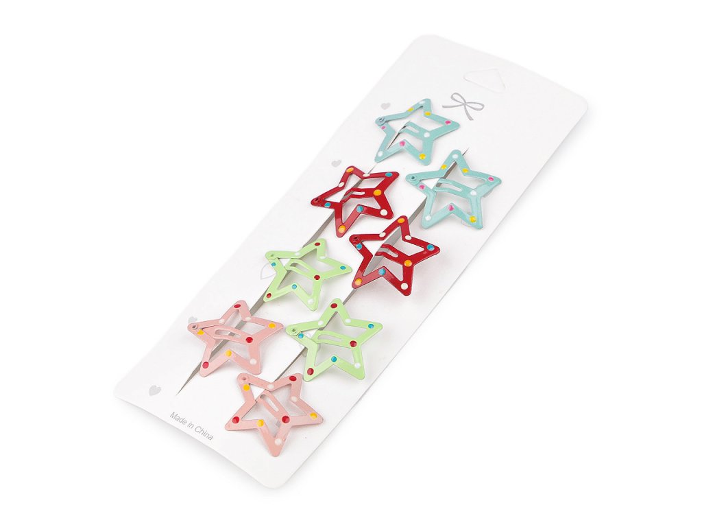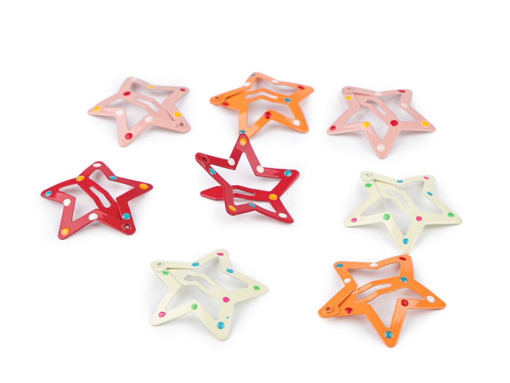 Malé sponky pukačky s hvězdou se hodí do jemných dětských vlásků. Udrží i jemný pramínek vlasů. Jsou vyrobené z kvalitního materiálu, který dlouho drží svůj tvar, funkčnost i barvy.