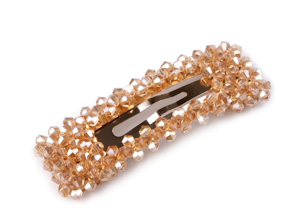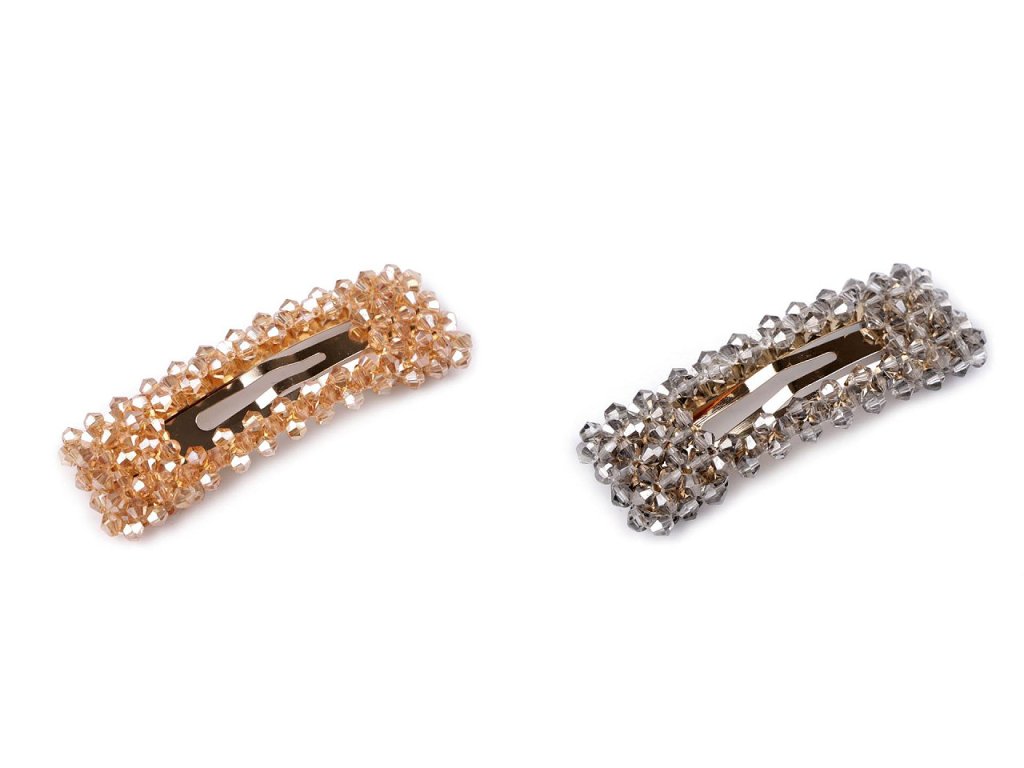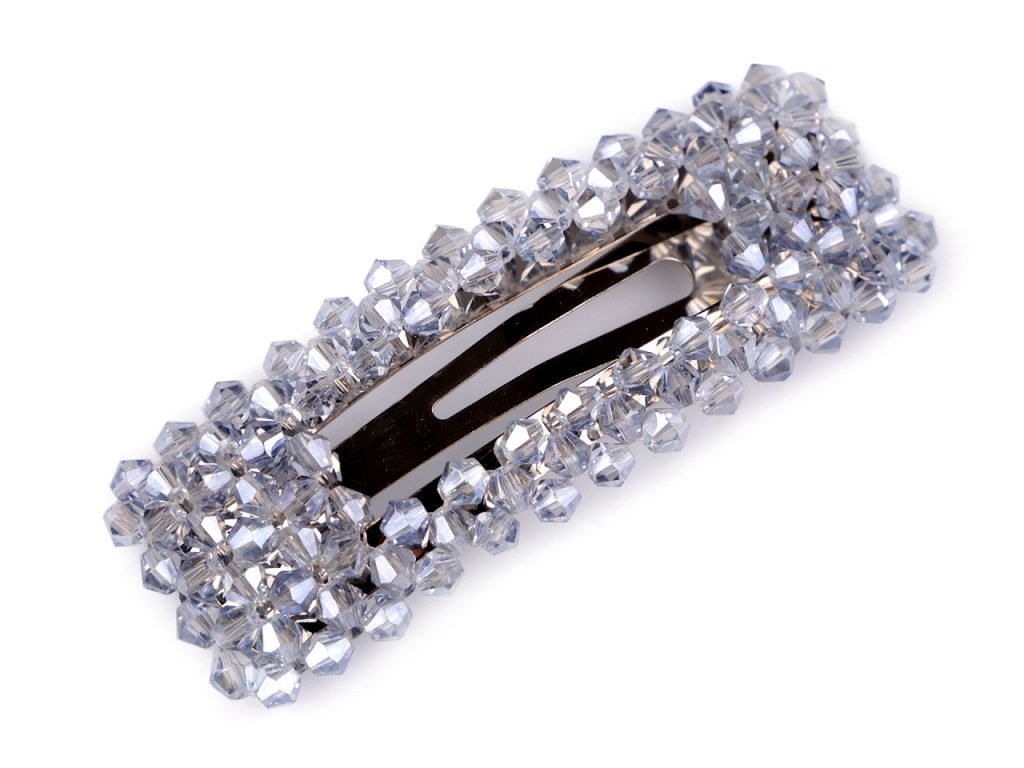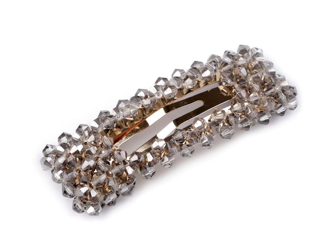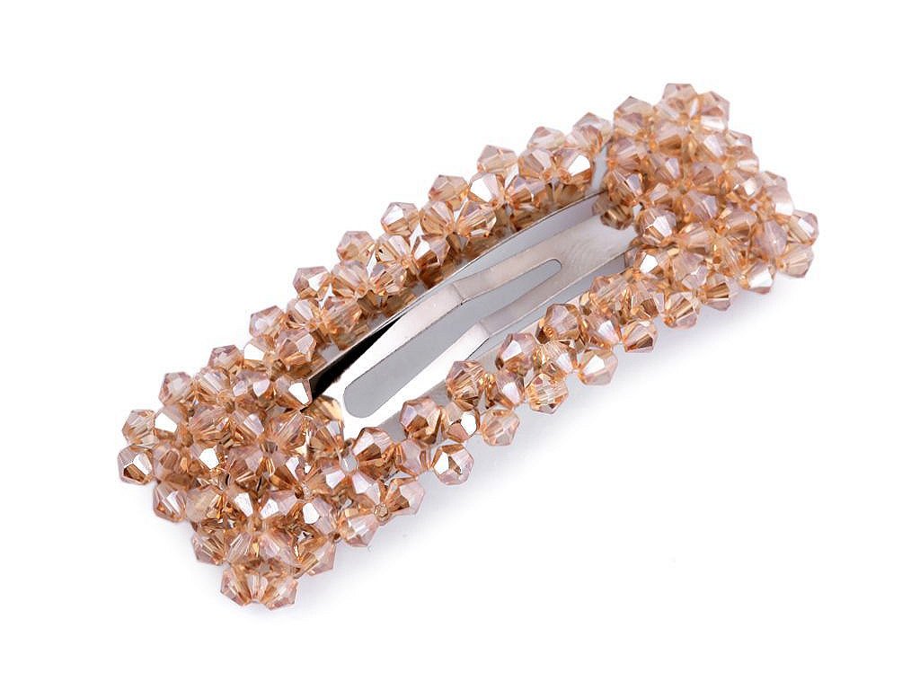 Velká pukačka s broušenými korálky poutavě ozdobí váš účes. Korálky mají povrchovou úpravu s měnivým AB efektem, oslnivě se třpytí. Sponka se hodí se ke slavnostním příležitostem.