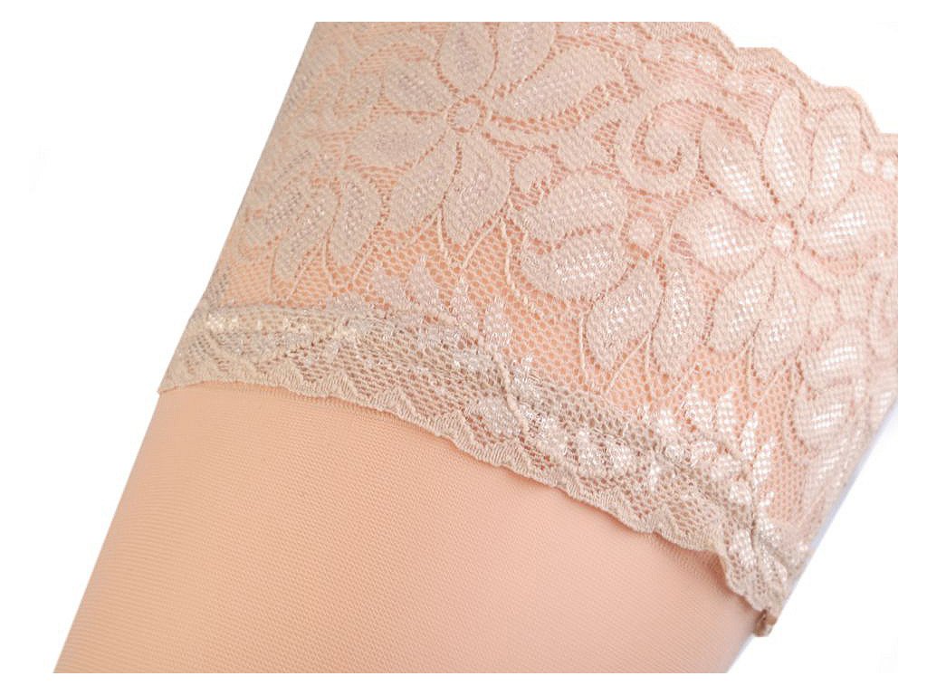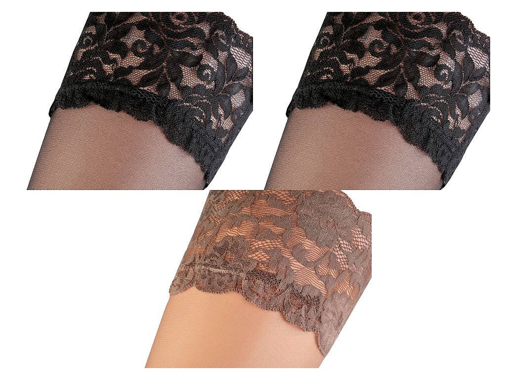 Samodržící punčochy jsou vyrobeny z nejlepší příze, díky dvěma silikonovým páskům přiléhají k noze a zvyšují svobodu pohybu. Při nošení se umocňuje fantazie a žena se stává elegantní. Velikost 1-2 (délka nohy 23/24cm, výška postavy 152/164), 3-4 (délka nohy 25/26cm, výška postavy 164/170)