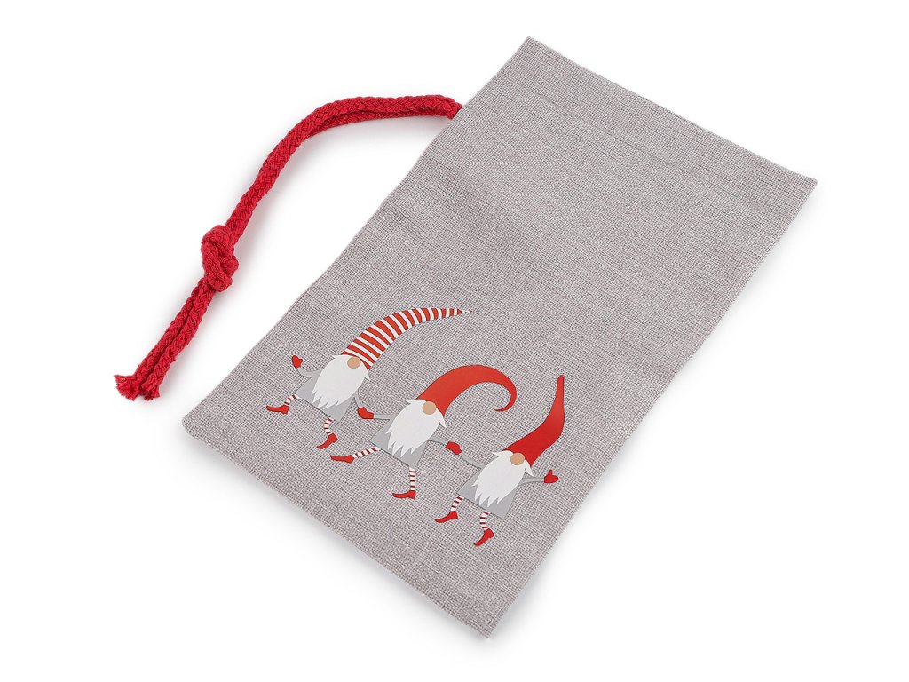 Dárkový pytlík s potiskem skřítků se díky bavlněné zavazovací šňůrky hodí k balení dárků. Má zajímavý materiál, který imituje jutu, je pevný a kvalitní. Můžete ho použít na dárky nebo ho naplnit mikulášskou nadílkou. Dá se naaranžovat jako vánoční dekorace.