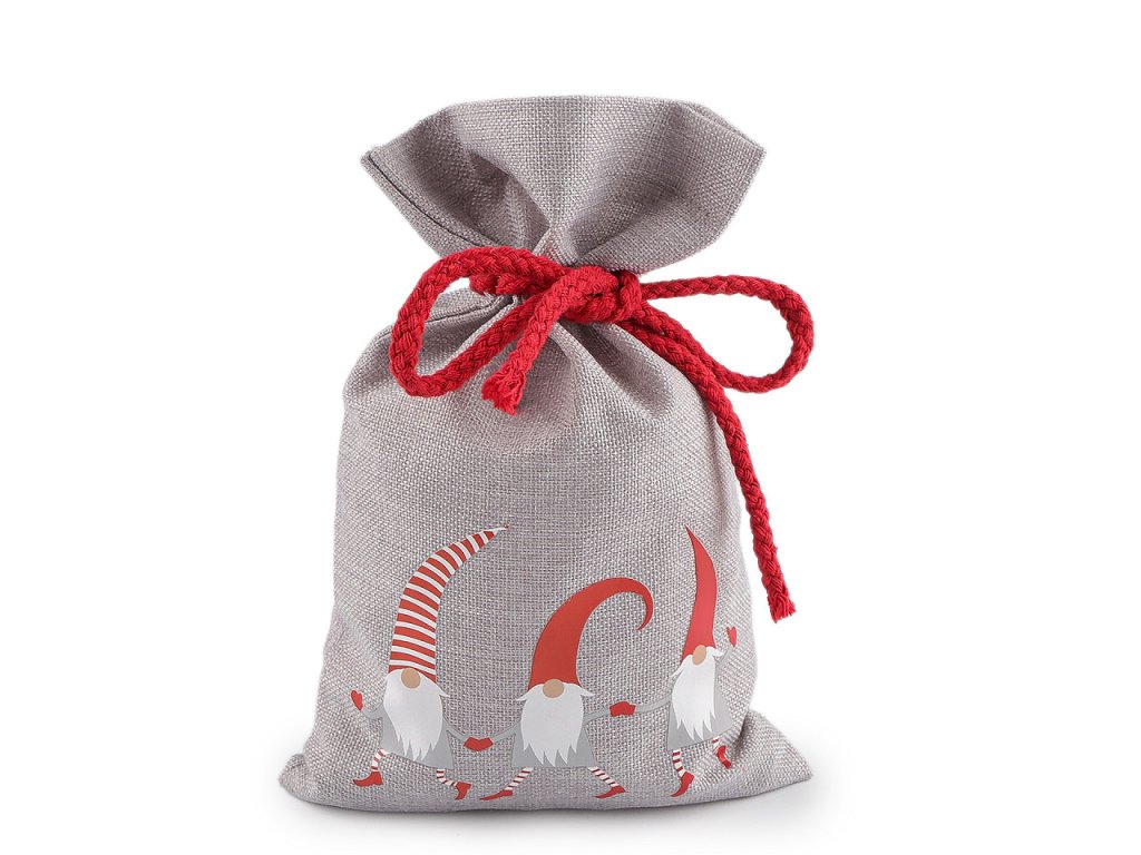 Vánoční dárkový pytlík skřítek 15x25 cm imitace juty