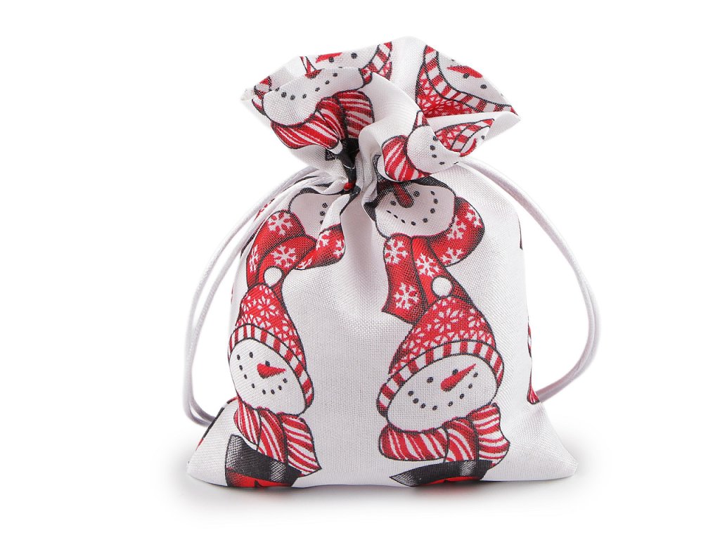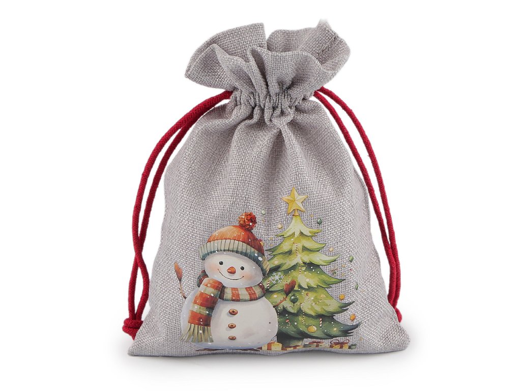 Vánoční dárkový pytlík sněhulák 13x18 cm imitace juty