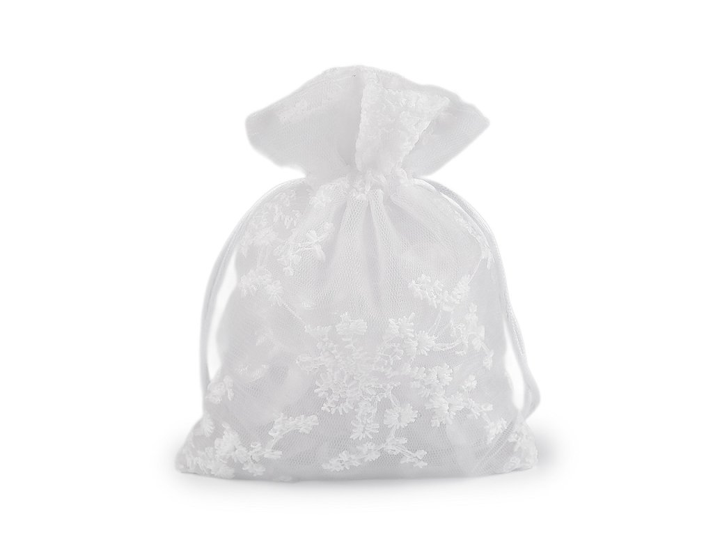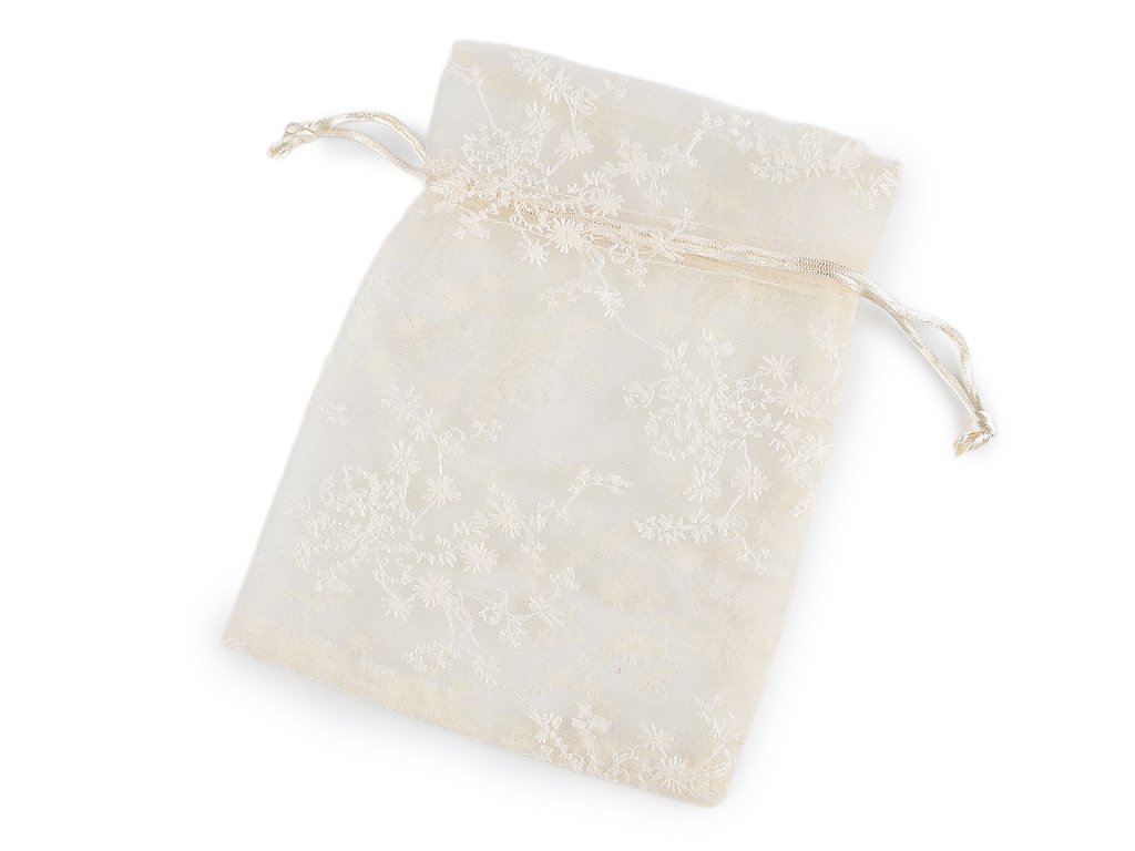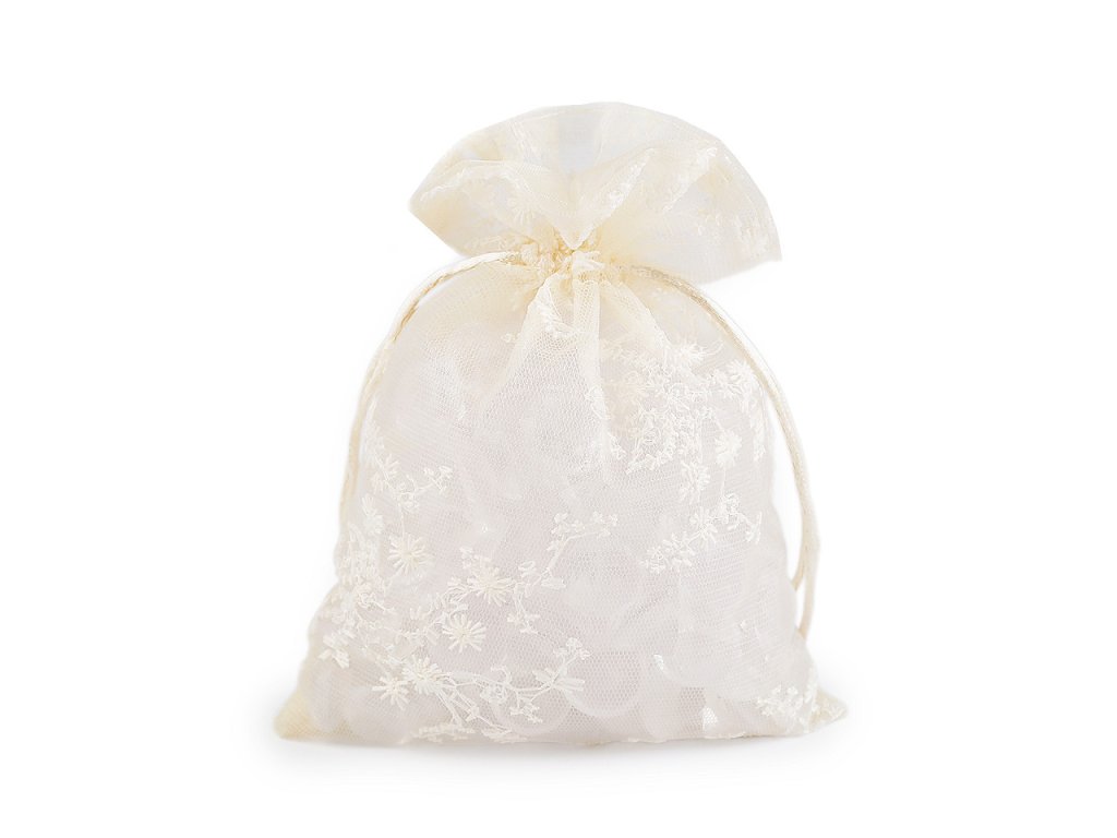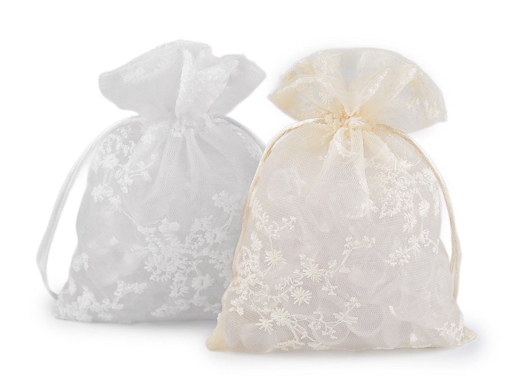 Dárkový pytlík z organzy zdobí strojová květinová výšivka. Působí luxusním dojmem, hodí se k zabalení menšího dárku, který povýší na vyšší úroveň. Snadno ho uzavřete pomocí dvou stahovacích saténových šňůrek. Pytlík je vhodný na zabalení dárků, ale můžete do něj uschovat i vaše osobní poklady nebo naaranžovat voňavé sušené květy.