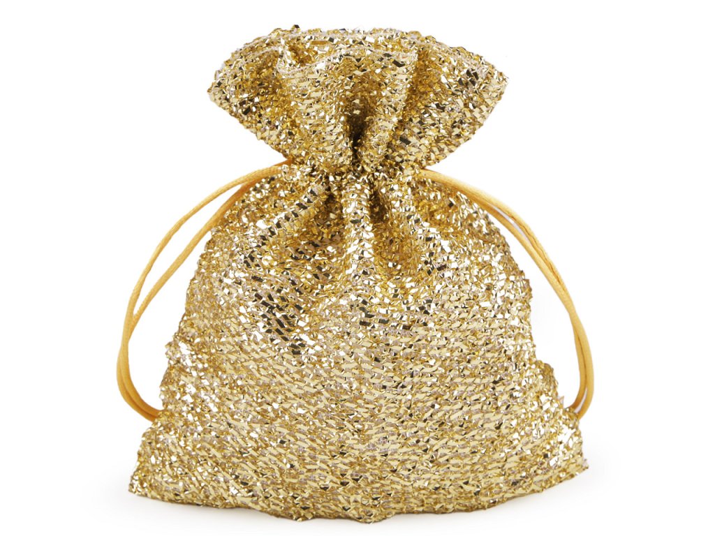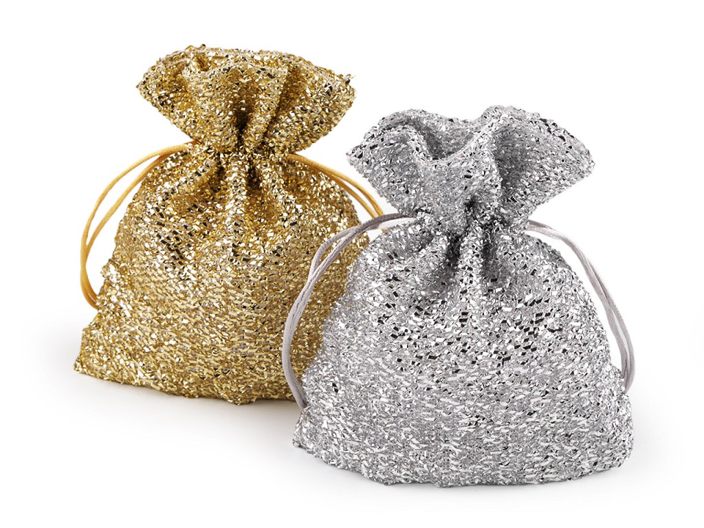 Dárkový pytlík s hrubou lurexovou strukturou má kvalitní provedení, působí elegantně a luxusně. Stahuje se pomocí kulatých saténových šňůrek. Do pytlíku můžete schovat menší dárky k různým příležitostem jako je např. svatba, narozeniny, výročí, vánoce atd. Třpytivý pytlík je originální způsob, jak zabalit dárek a povýšit jej na vyšší úroveň.