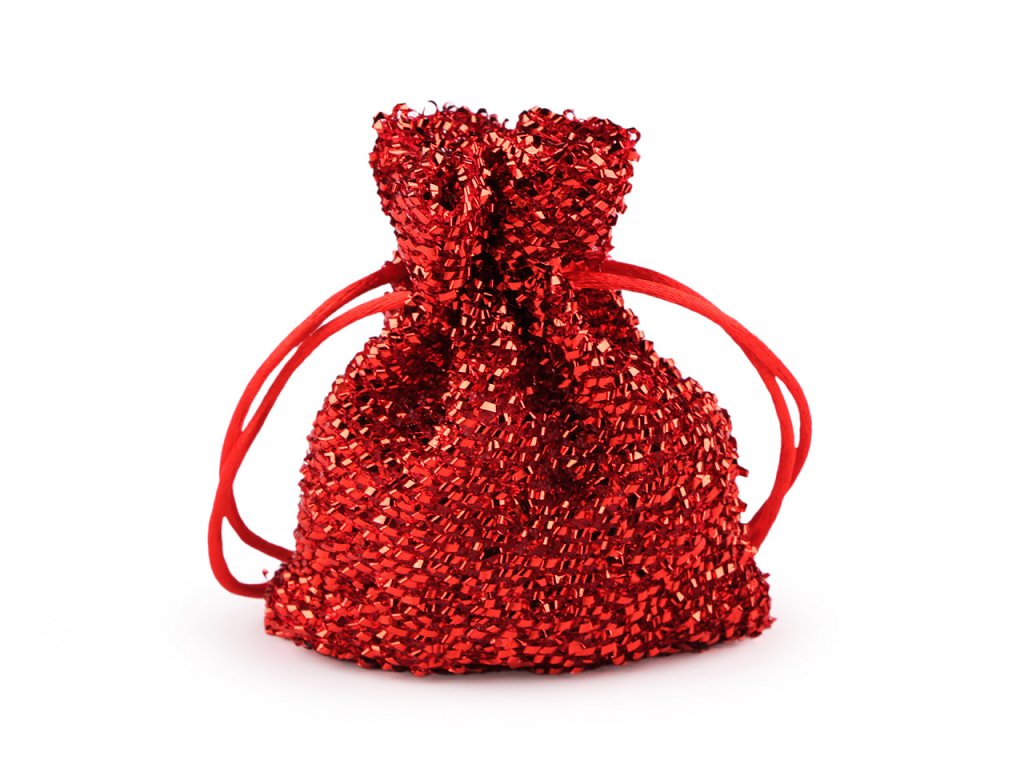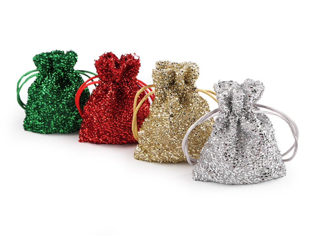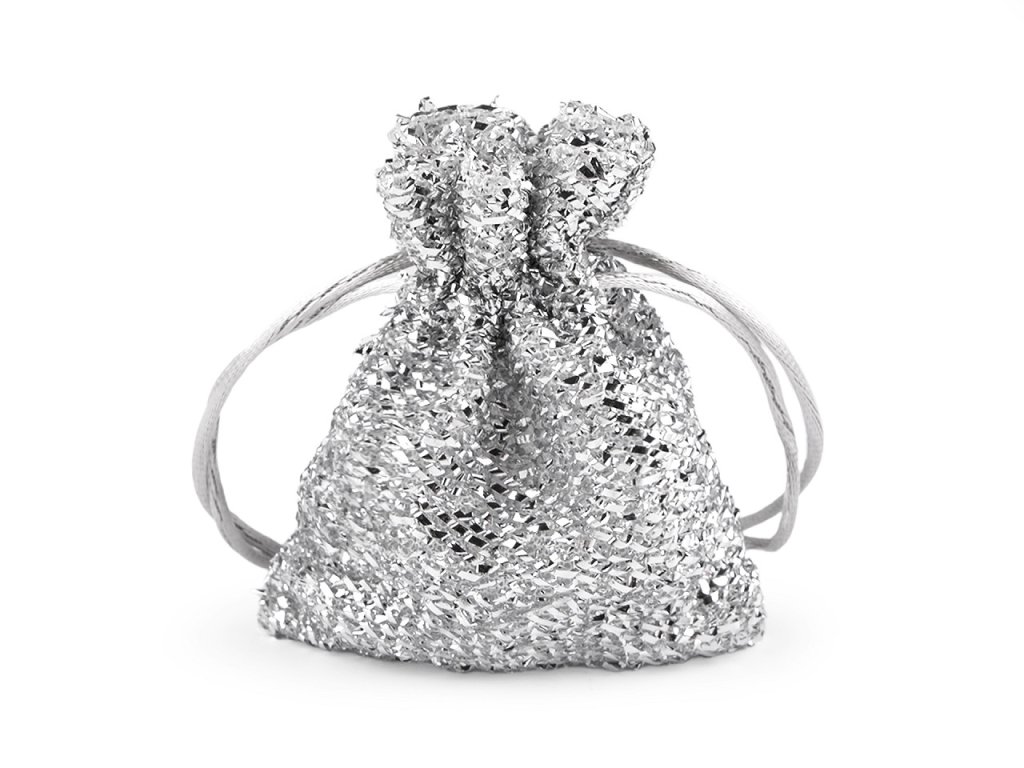 Malý dárkový pytlíček má kvalitní provedení. Povrch má hrubou lurexovou strukturu, která působí elegantně a luxusně. Stahuje se pomocí kulaté saténové šňůrky. Do pytlíku můžete schovat malé dárky k různým příležitostem jako je např. svatba, narozeniny, výročí, vánoce atd. Třpytivý pytlík je originální způsob, jak zabalit dárek a povýšit jej na vyšší úroveň.