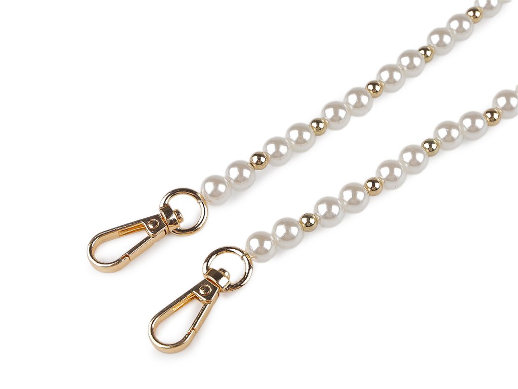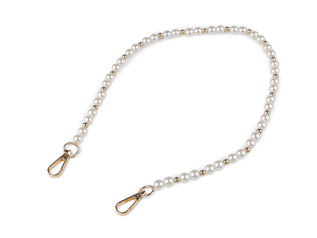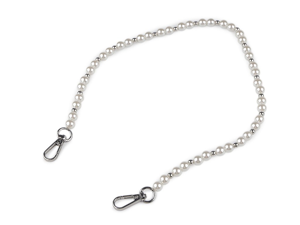 Perlový řetízek je elegantní a stylový doplněk pro každodenní nošení i speciální příležitosti. Skvěle doplní psaníčka, menší kabelky nebo pouzdra na mobilní telefony. Můžete ho snadno připevnit díky praktickým karabinám.