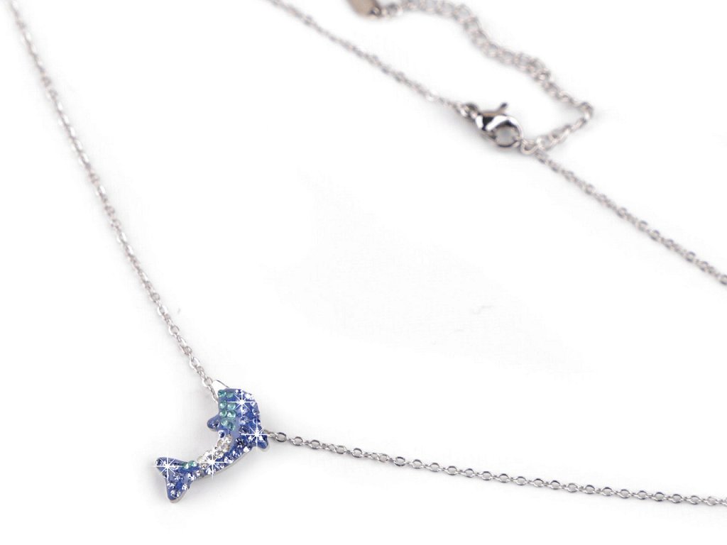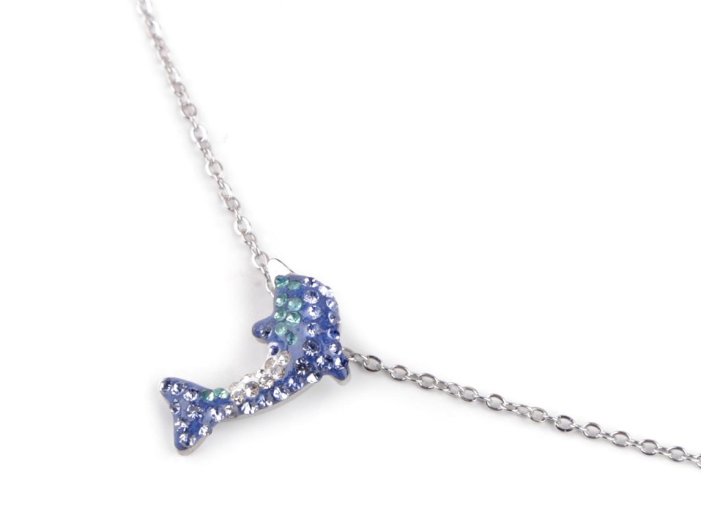 Náhrdelník z nerezové oceli delfín s broušenými kamínky