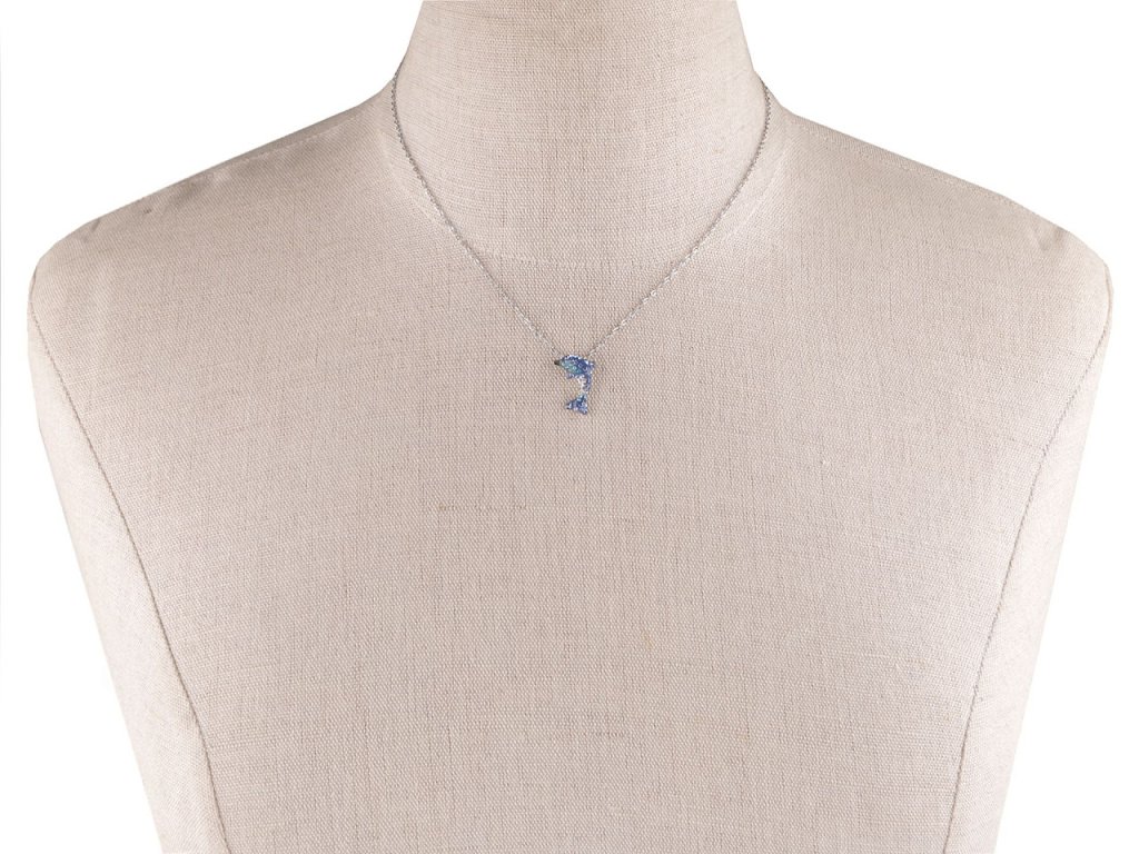 Řetízkový náhrdelník s přívěskem delfína je vyrobený z kvalitní nerezové oceli. Přívěsek se poutavě třpytí, je osázený broušenými kamínky, volně se na řetízku pohybuje. Náhrdelník decentně dozdobí všechny ženy, které milují oceán a vůni dálek.