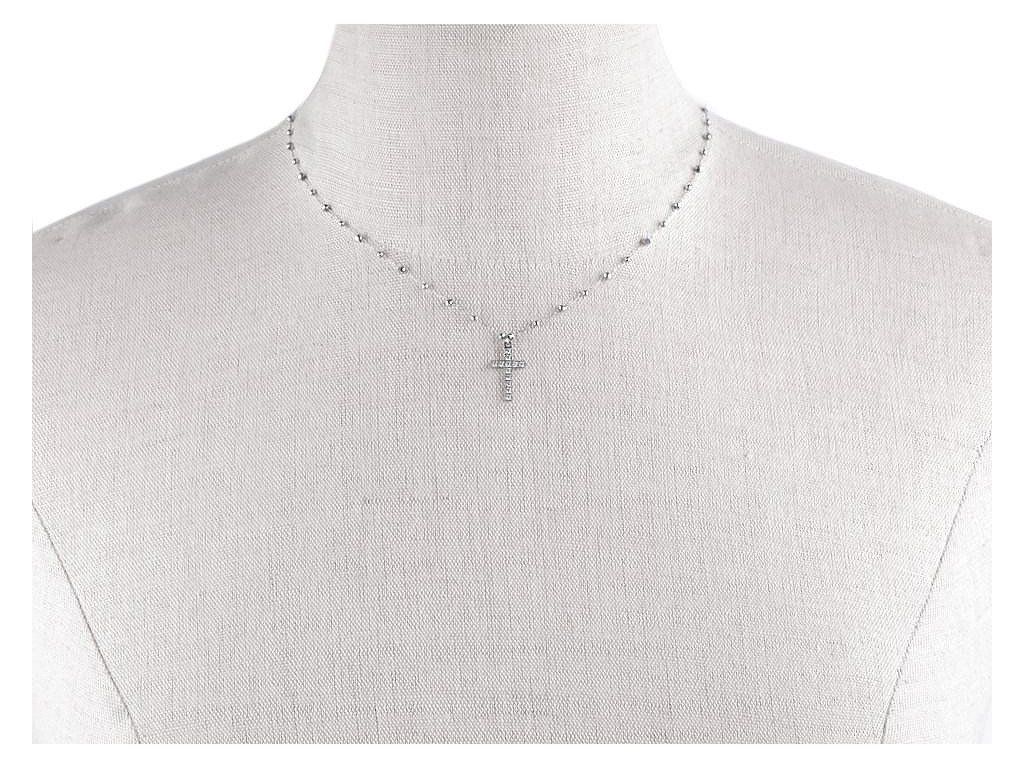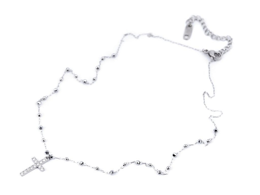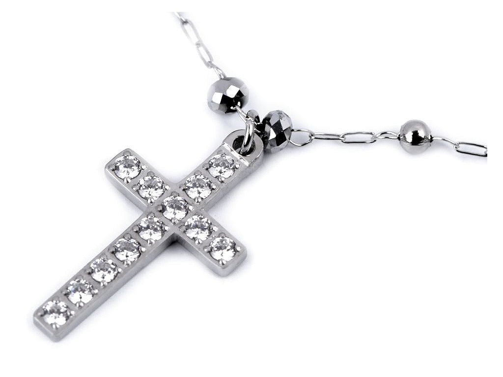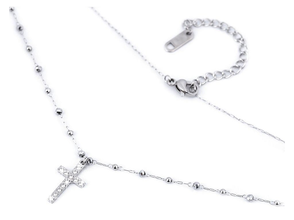 Křížek je osázený drobnými broušenými kamínky, které se poutavě třpytí. Očkový řetízek je kombinovaný s broušenými korálky z nerezové oceli. Náhrdelník s křížkem je oblíbeným a symbolickým dárkem pro ochranu.