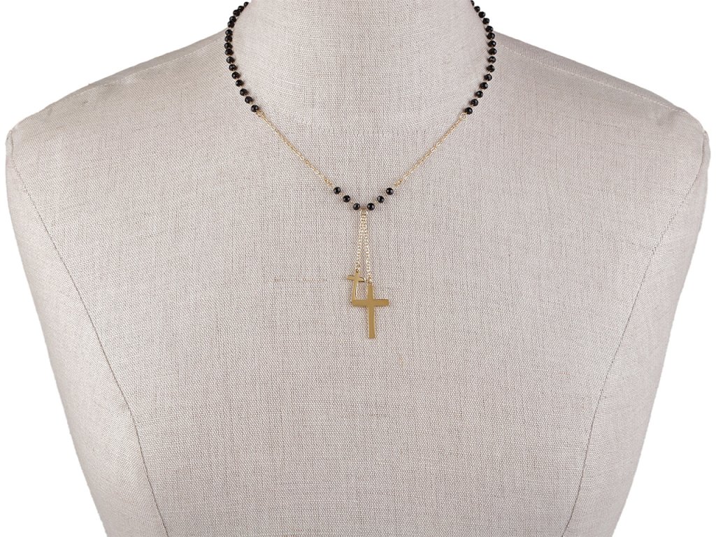 Náhrdelník z nerezové oceli křížek s broušenými korálky