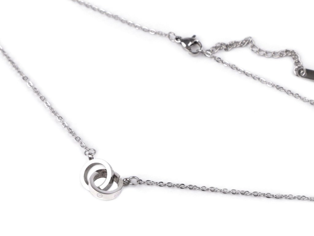 Řetízkový náhrdelník s přívěskem propojených kroužků je vyrobený z kvalitní nerezové oceli. Kroužky mají vysoký lesk, jsou umístěné uprostřed náhrdelníku.
