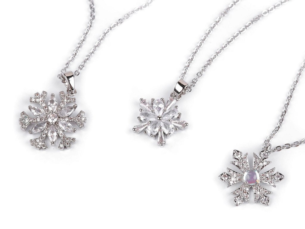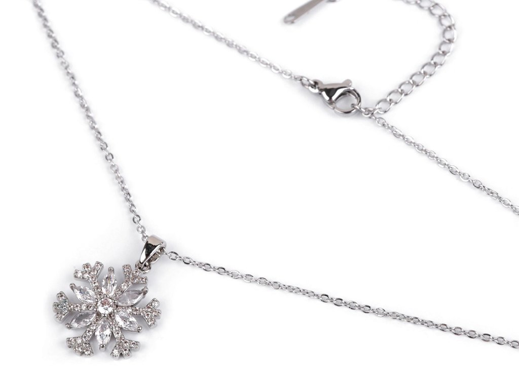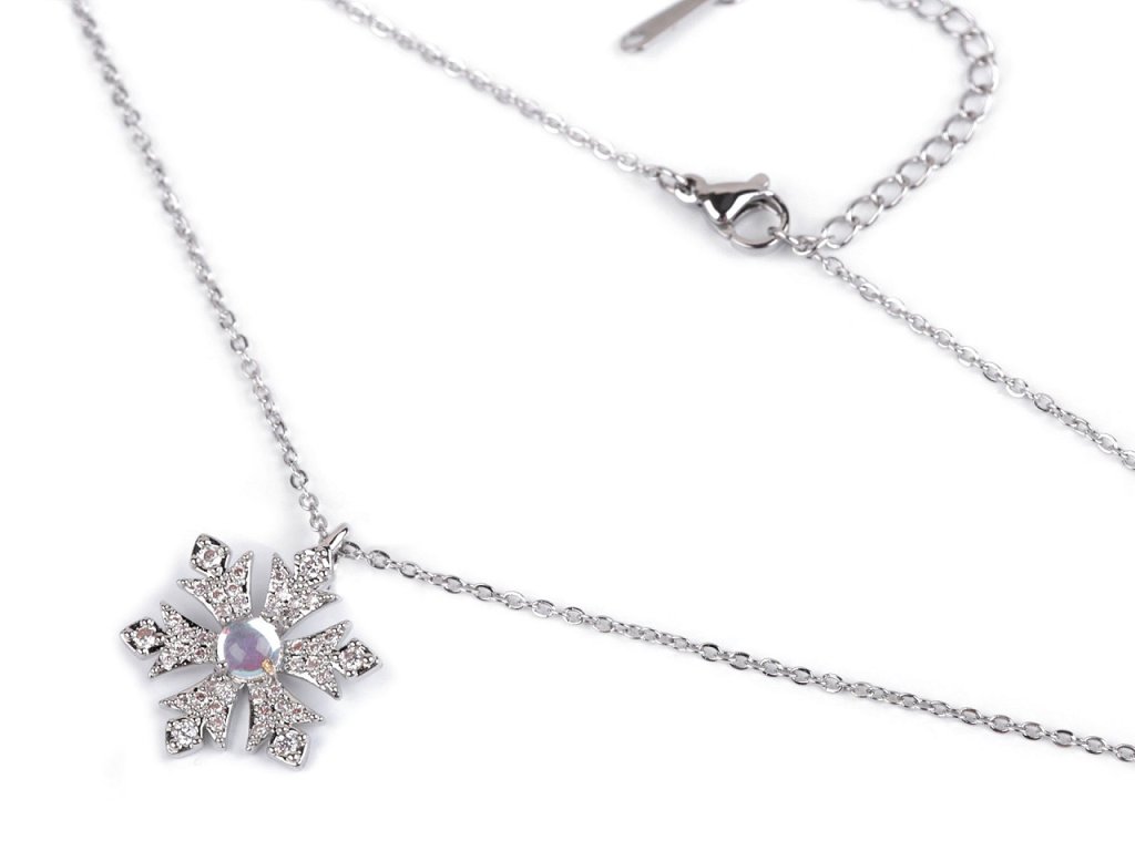 Náhrdelník z nerezové oceli vločka s broušenými kamínky