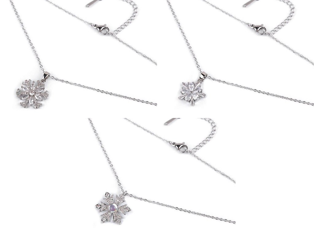 Řetízkový náhrdelník s přívěskem vločky je elegantní šperk vyrobený z kvalitní nerezové oceli. Přívěsek se nádherně třpytí, je osázený broušenými kamínky. Je zavěšený na šlupně, volně se na řetízku pohybuje.