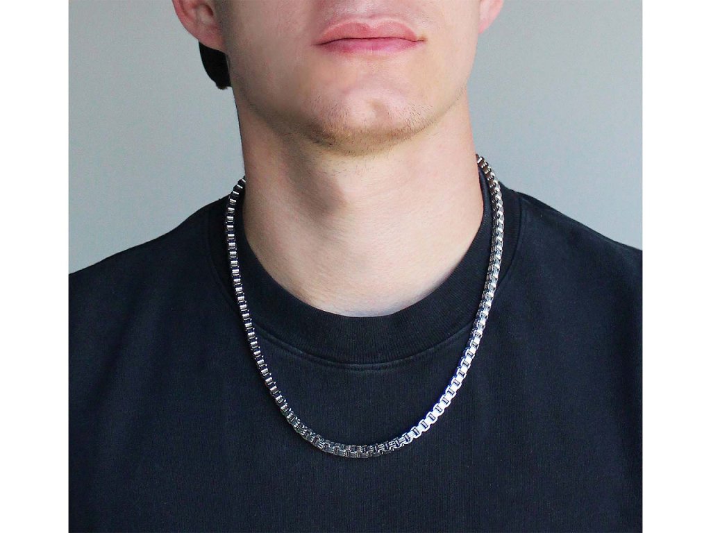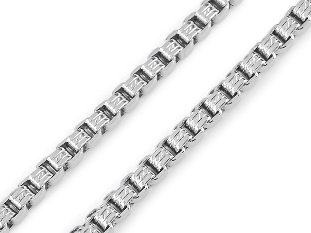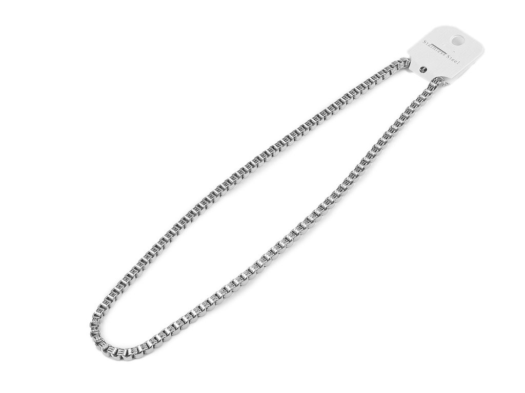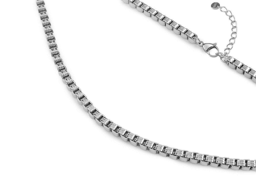 Robustní řetízek z kvalitní nerezové oceli nabízí stylový vzhled, skládá se z hranatých oček s povrchovou strukturou. Svým vzhledem i délkou je vhodný k nošení jak samostatně, tak i v kombinaci s dalšími řetízky.