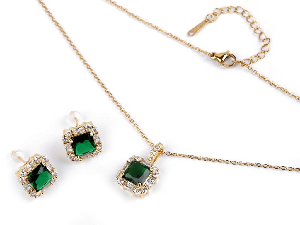 Sada náhrdelník a náušnice z nerezové oceli s broušenými kamínky